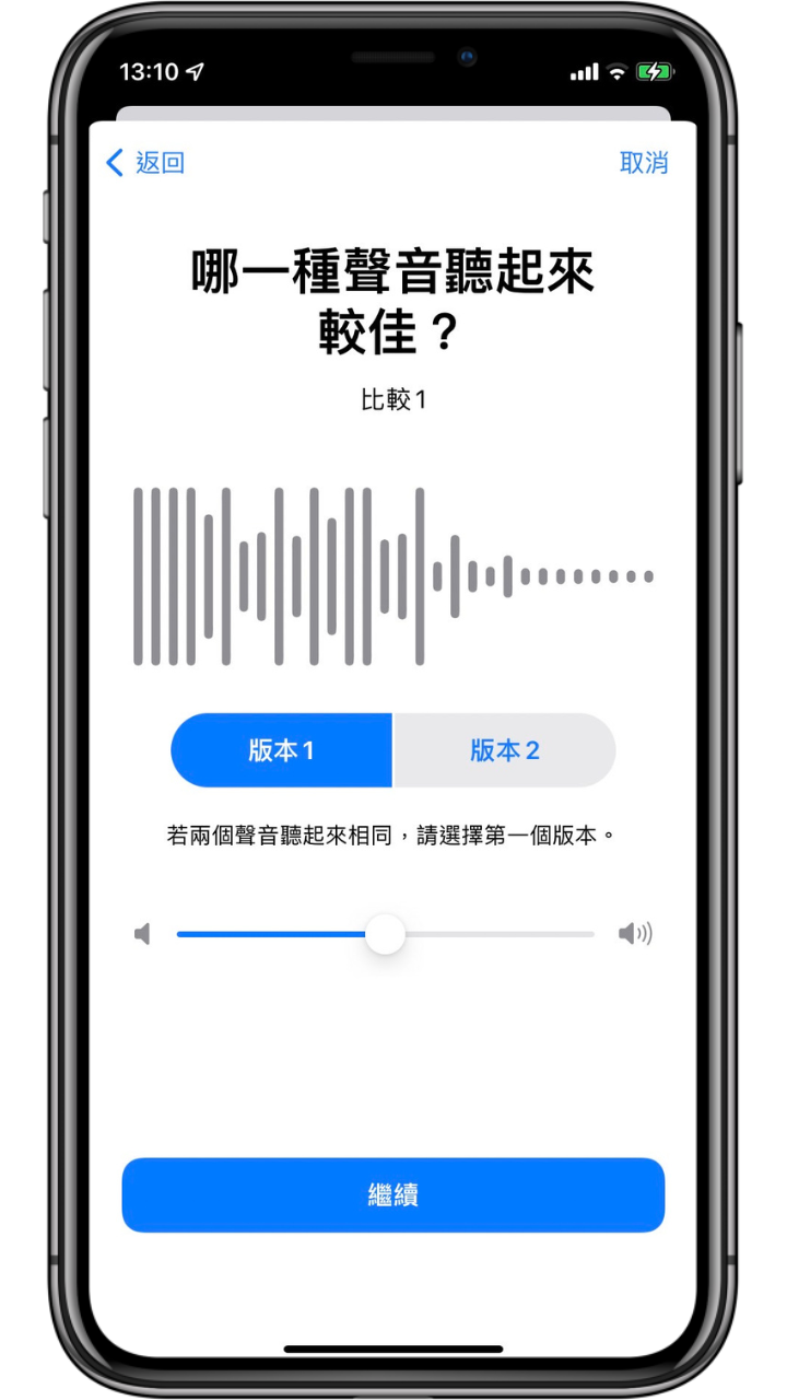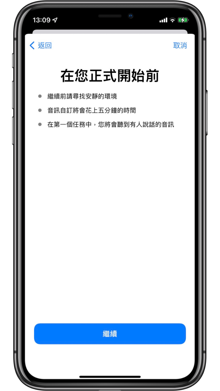 接下來就會開始對使用者進行一連串聲音的測試,可以依照自己的喜好去自訂出個人化的版本。