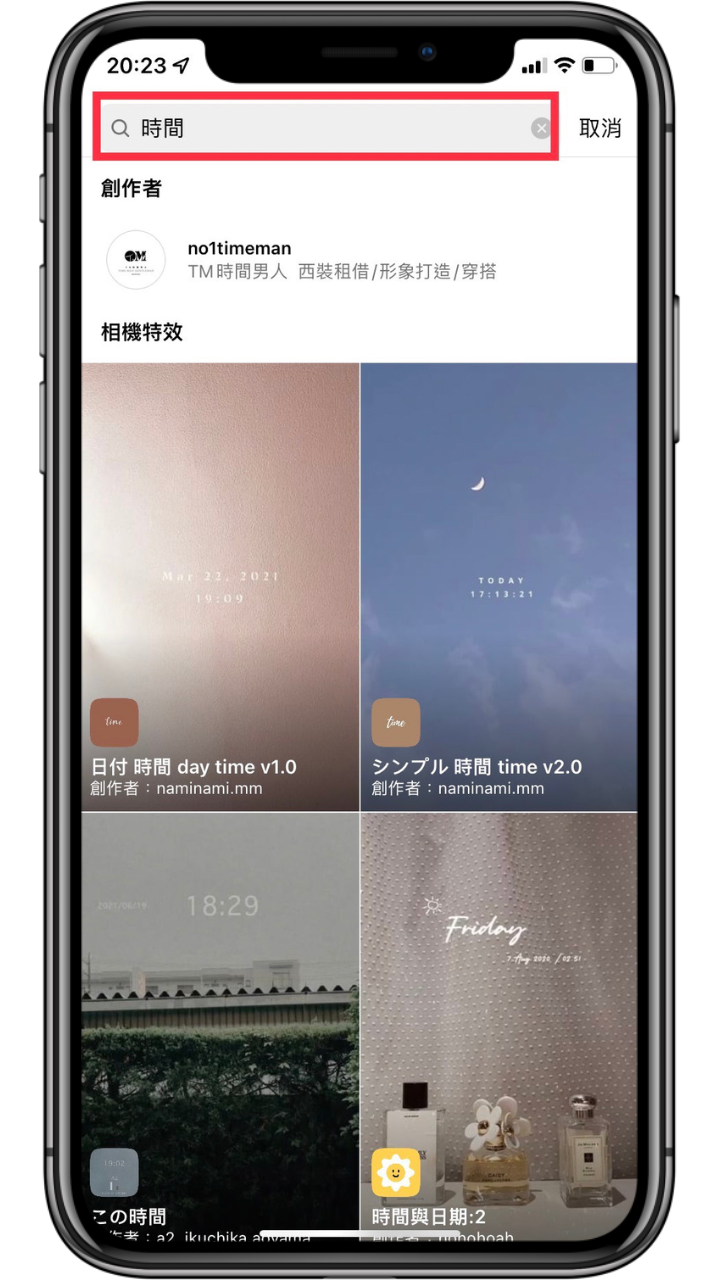 如果想要有一些特定主題的限時動態,也可以在上方搜尋關鍵字,就會出現相關的限時動態特效。