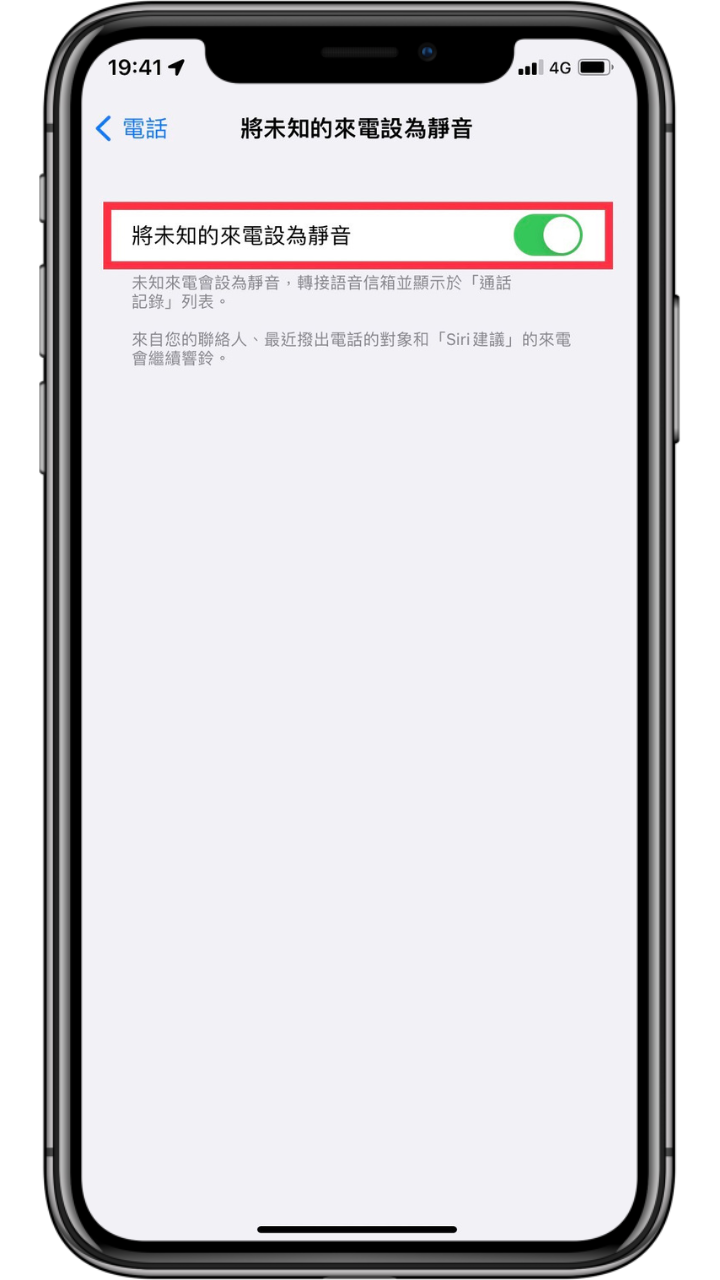 注意:這項功能是靜音「未知號碼」的來電並且轉接到語音信箱,然後在「電話」APP裡也能夠看到顯示未接來電。「未知號碼」除了包含未顯示號碼的陌生來電之外,也包含了沒有在你聯絡人列表或是從未聯絡過的電話號碼。因此,有可能會出現家人用陌生人的手機打給你,而你沒接到,或是某些機構需要聯絡你而沒有接到等等諸如此類的情況。
