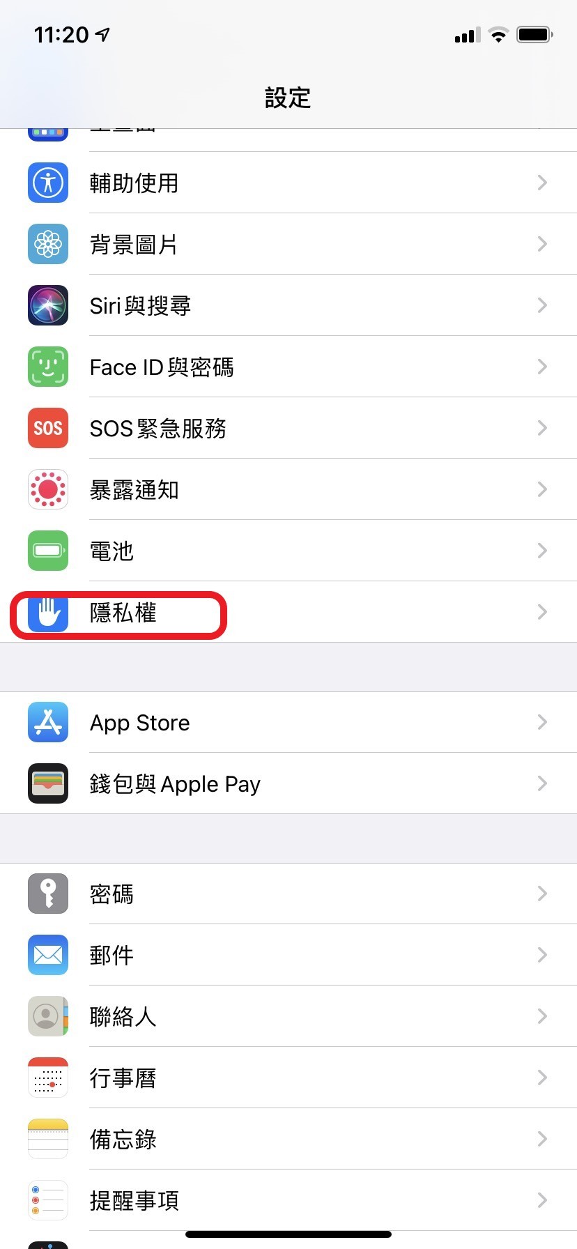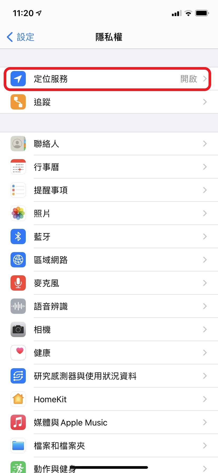 「設定」->「隱私權」->「定位服務」