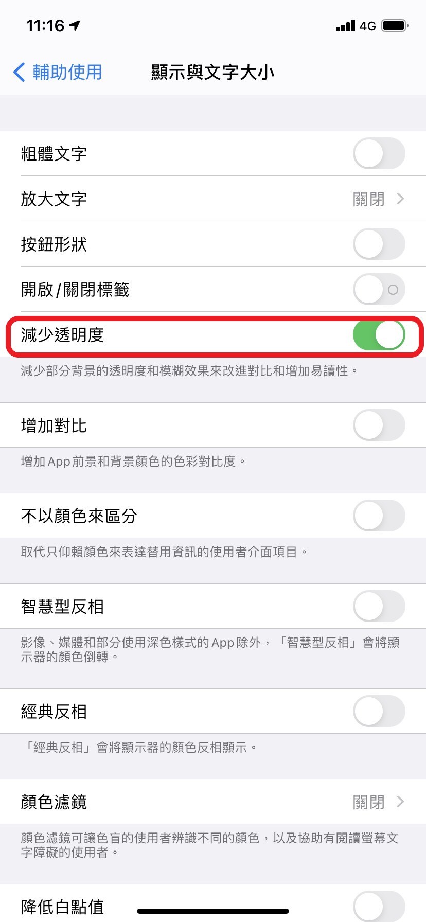 如何關閉「減少透明度」: