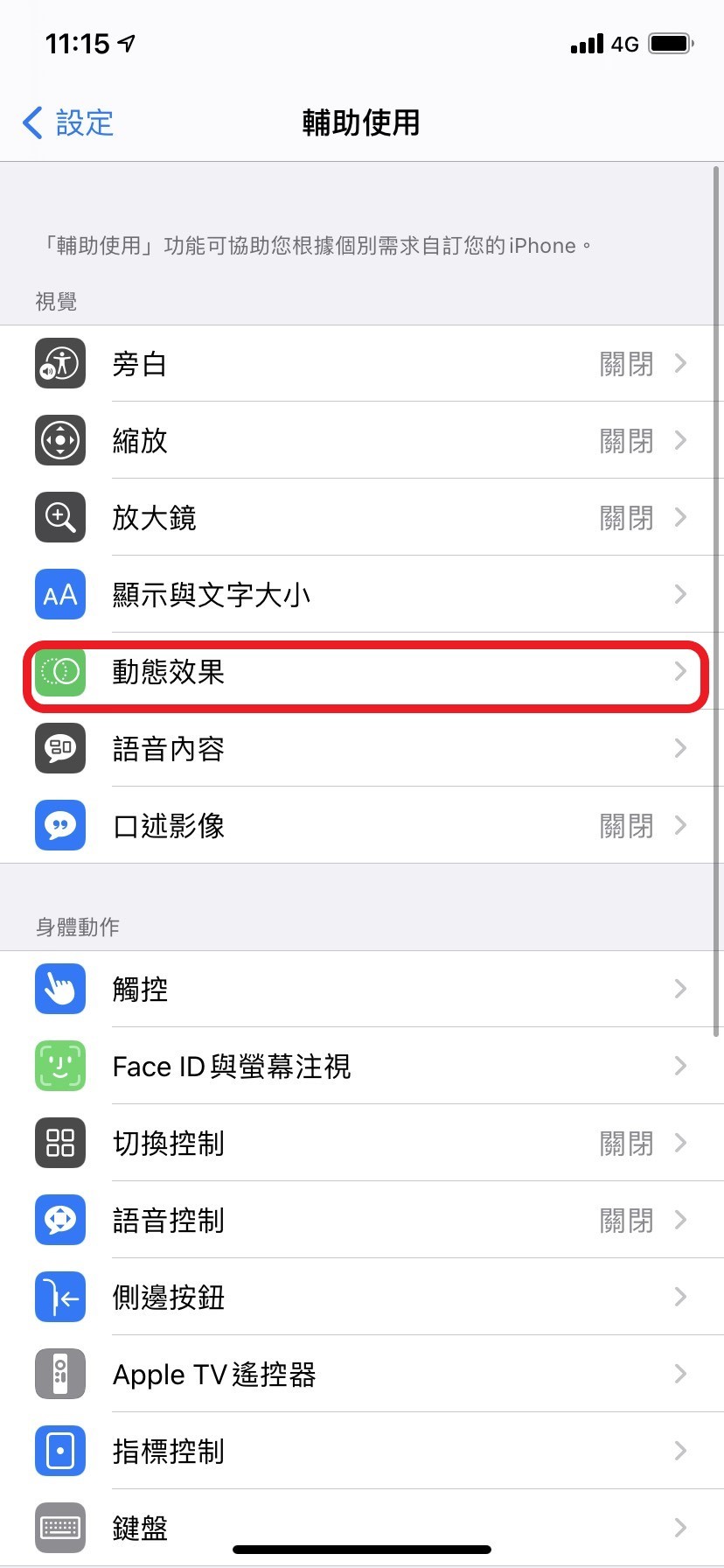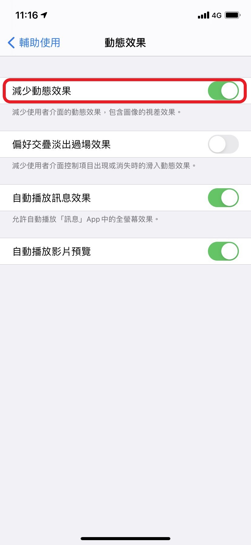 如何關閉「減少動態效果」: