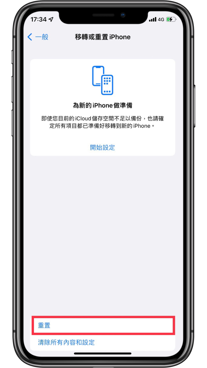 (PS:重置設定並不會清除資料但是會移除Apple Pay票卡)