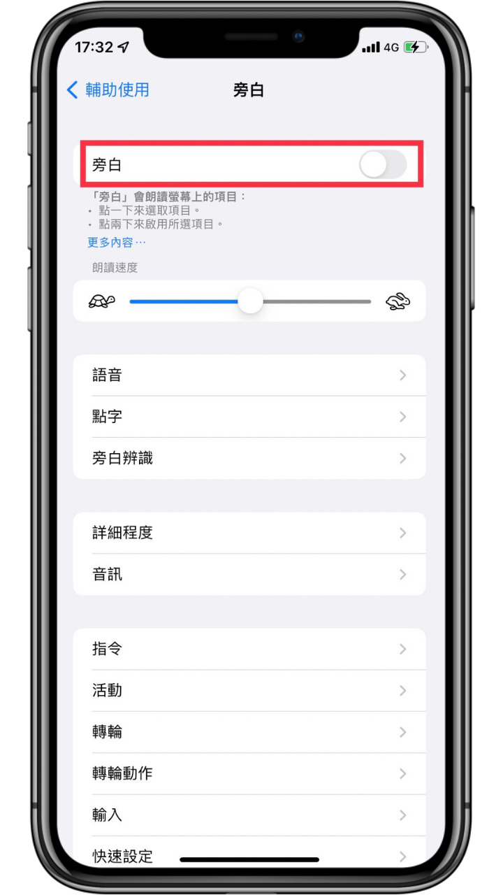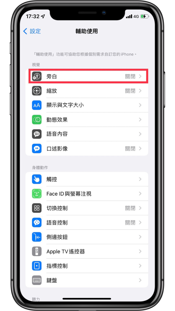 依據一些蘋果用戶的經驗,關閉iPhone「旁白」功能也有機率解決相機黑屏。