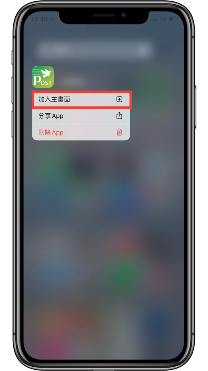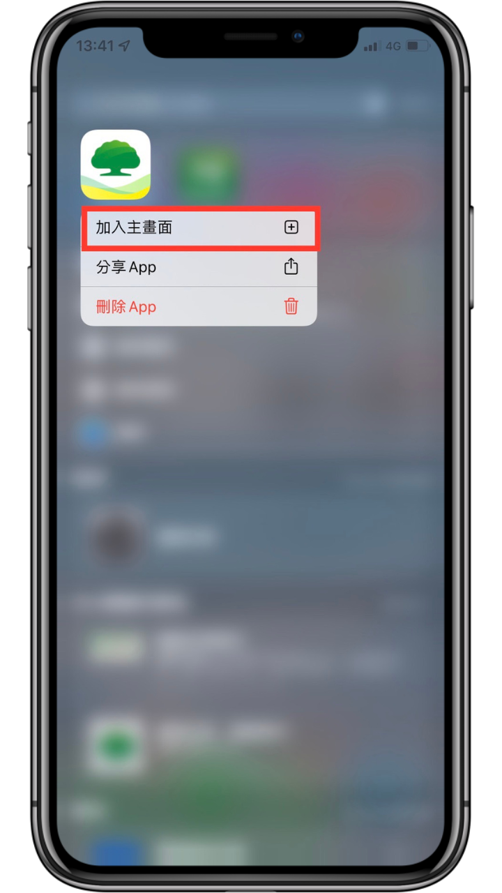 如果需要把 APP 加回至 iPhone 桌面的話,只需要長按APP,並且點選「加入主畫面」即可。