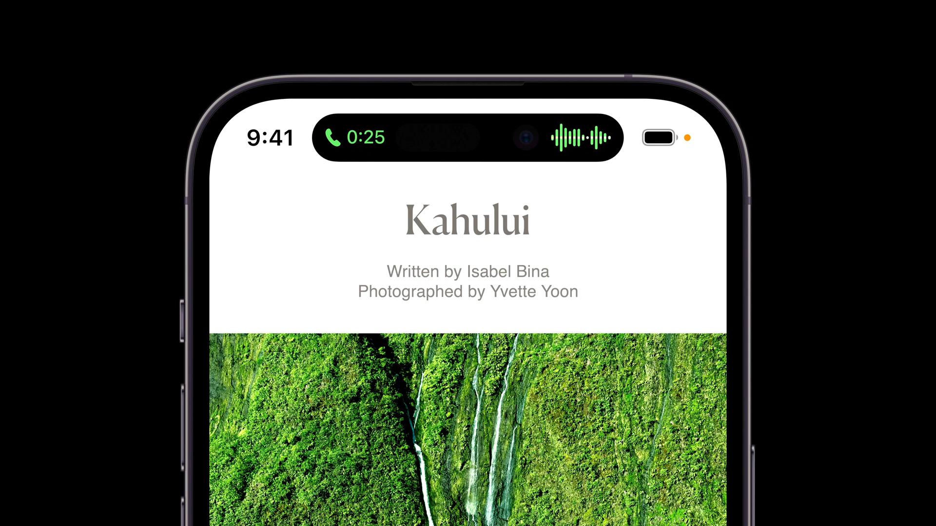 動態島(Dynamic lsland)是蘋果公司替 iPhone 挖孔螢幕設計全新的互動式介面,結合軟體與硬體的巧妙設計,能夠依照不同的操作和提示、通知與需求自動改變大小和形狀。