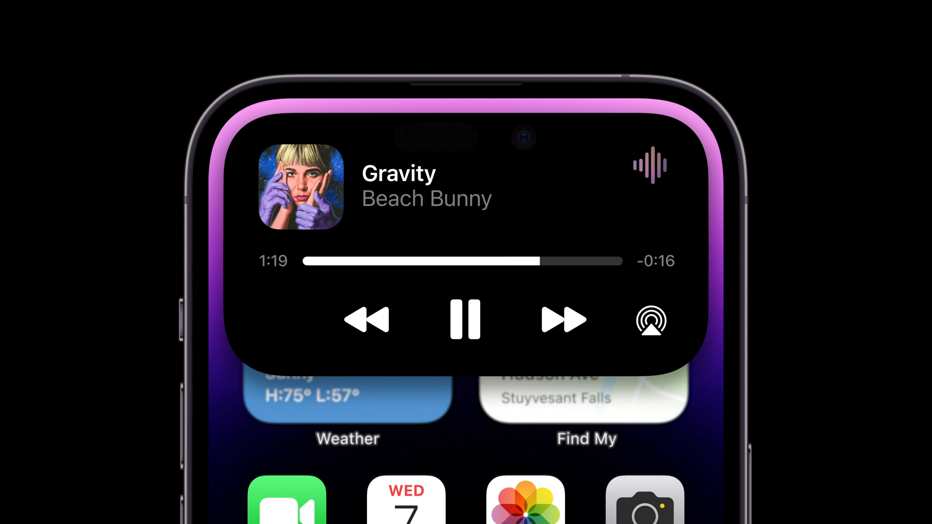 動態島最主要的功能就是能夠依照不同的操作和提示、通知與需求自動改變大小和形狀,下面就替大家展示動態島真實作用於不同情境的範例。