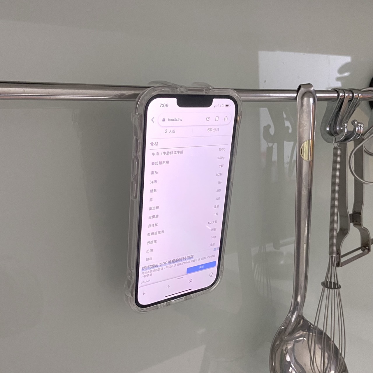 像我是一個不太會做菜的人,所以就很需要食譜這種東西,可是在做菜時使用手機非常的不方便,所以使用這款手機殼後使用掛勾模式真的方便很多,只要將手機掛在掛桿上就可以輕鬆的看食譜做菜了!