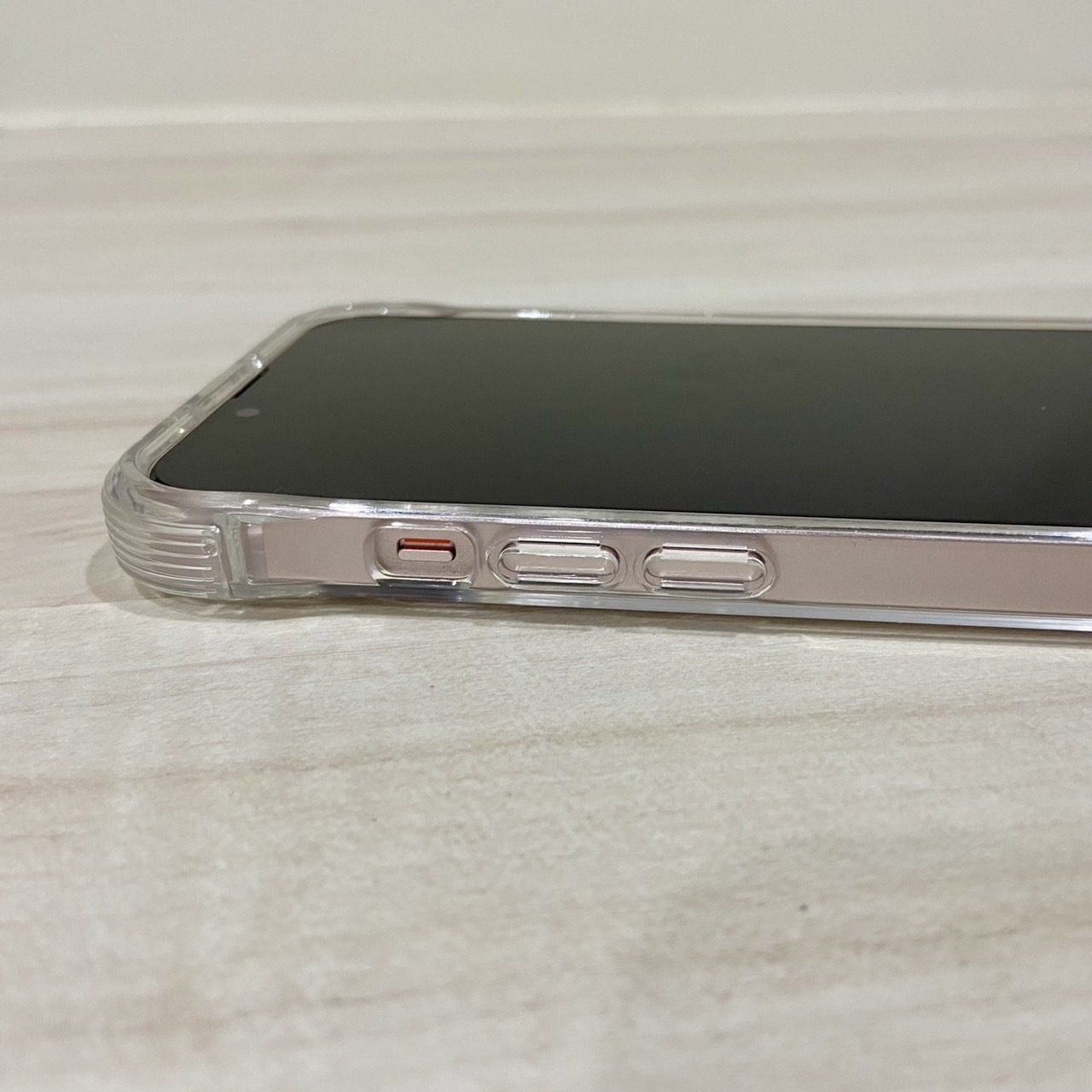 手機殼本體採用的是透明壓克力背板以及TPU包邊,整體設計簡單但細節卻不馬虎,開孔部分的切割邊緣也都十分平整,按鍵也做得十分細膩