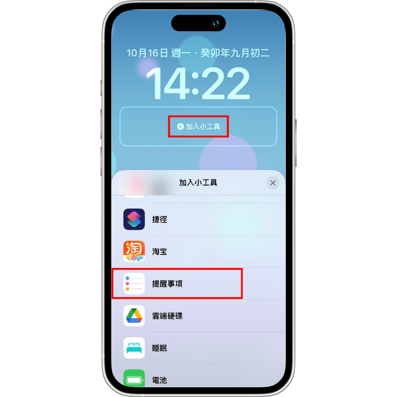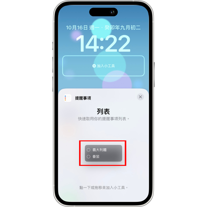 即使設備處於鎖屏狀態,也可以通過提醒事項小工具上的互動功能查看和勾選提醒事項。