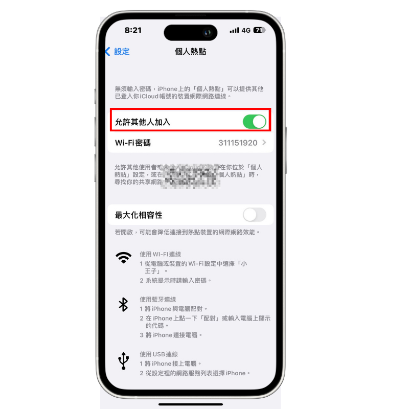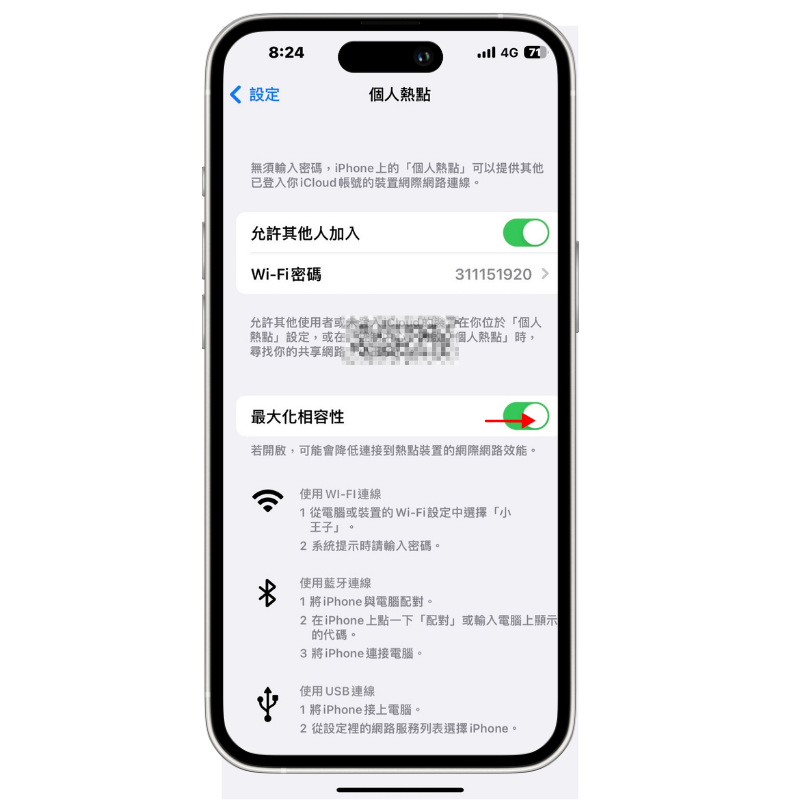 技巧四 : 調整個人熱點設定為最大化相容性