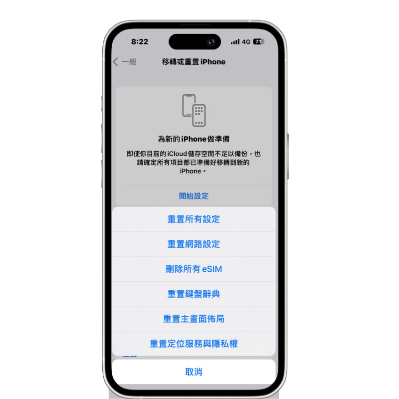 如果上述方法仍無法解決連接問題,請前往iOS的「設定」>「一般」>「重置」>「重置網路設定」。