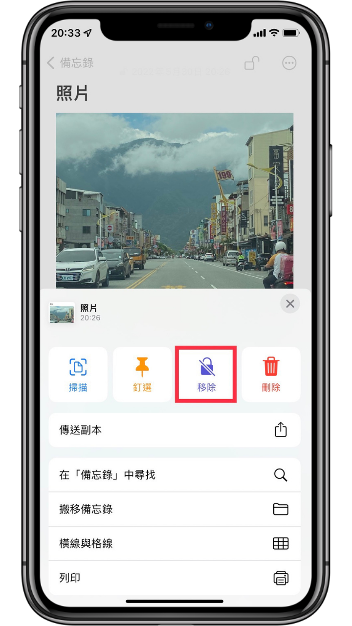 如果需要取消鎖定備忘錄,要先解鎖進到備忘錄裡 -> 點擊右上角「…」-> 點選「移除」即可。
