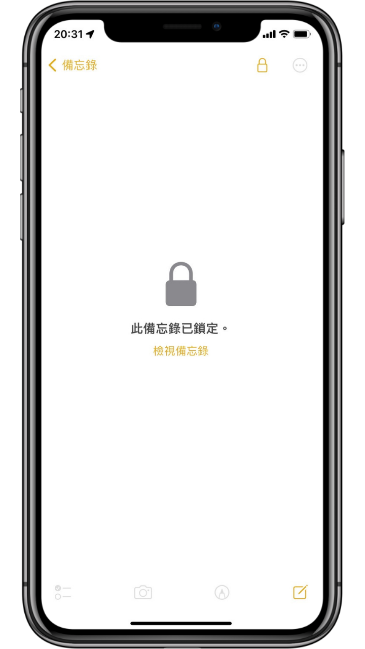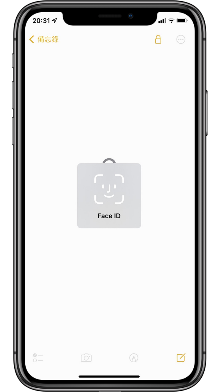 如需查看此備忘錄裡的相片,就必須要輸入密碼或FaceID。