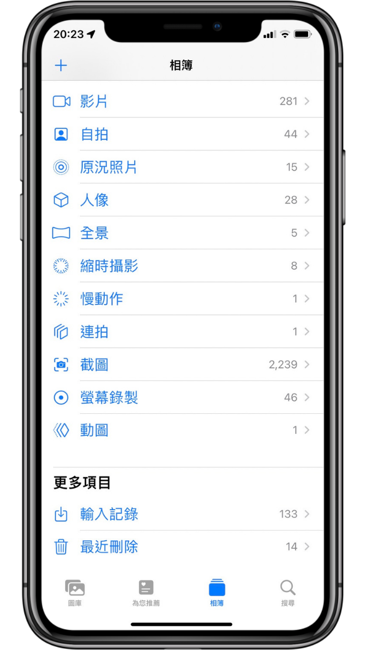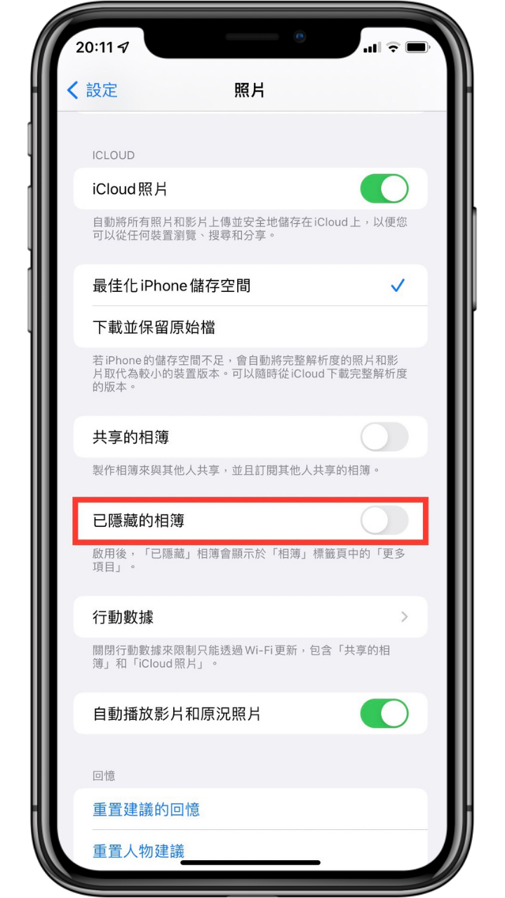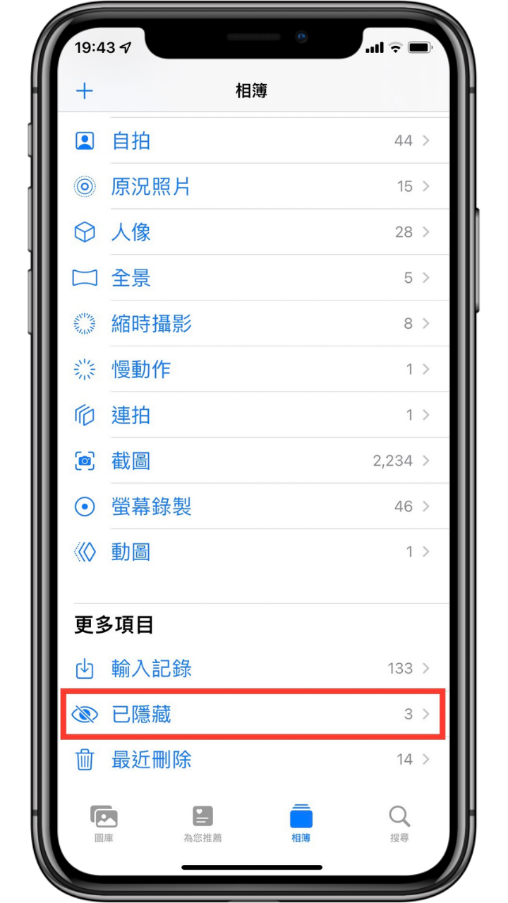 如果要查看隱藏後的相簿,可回到「相簿」頁面,滑至最下面點選「已隱藏」,即可查看已隱藏的相片。