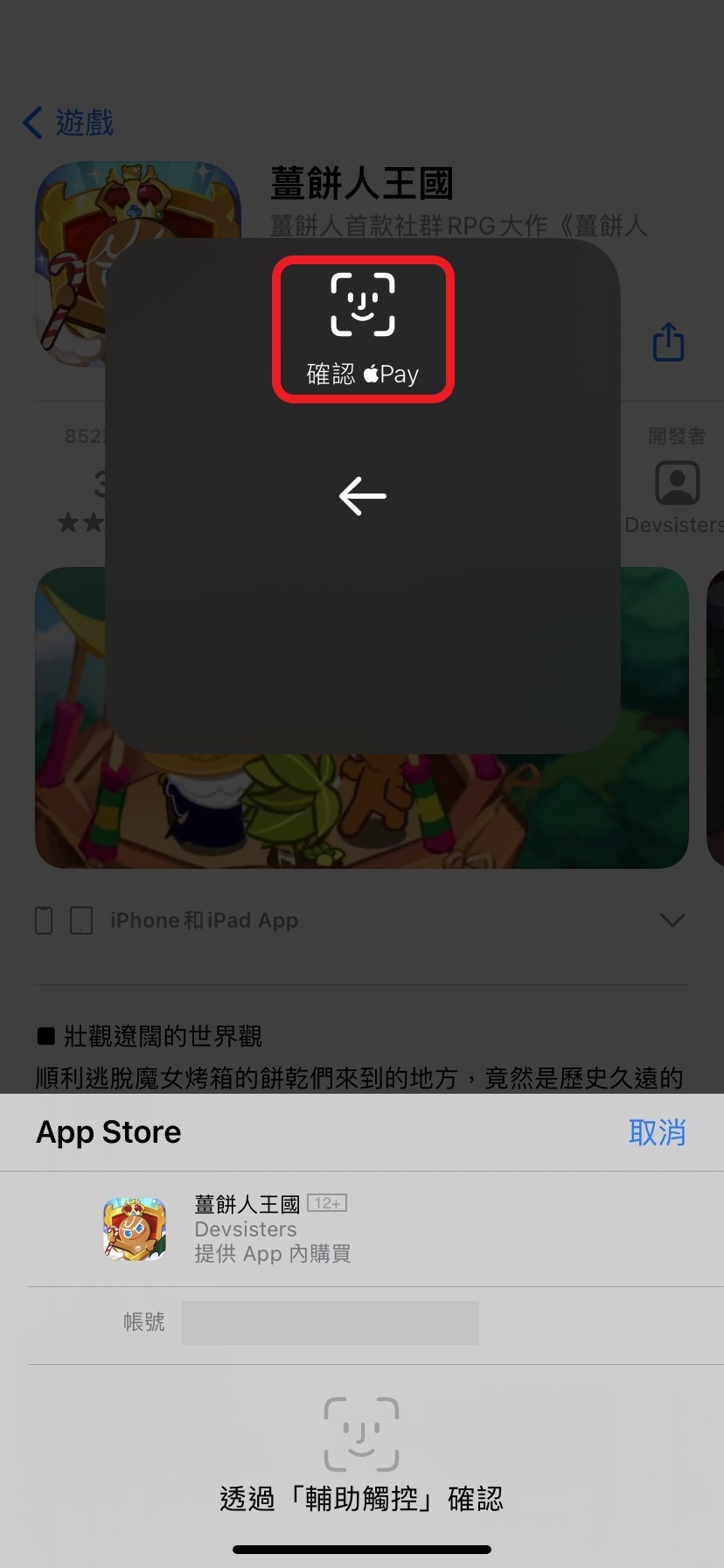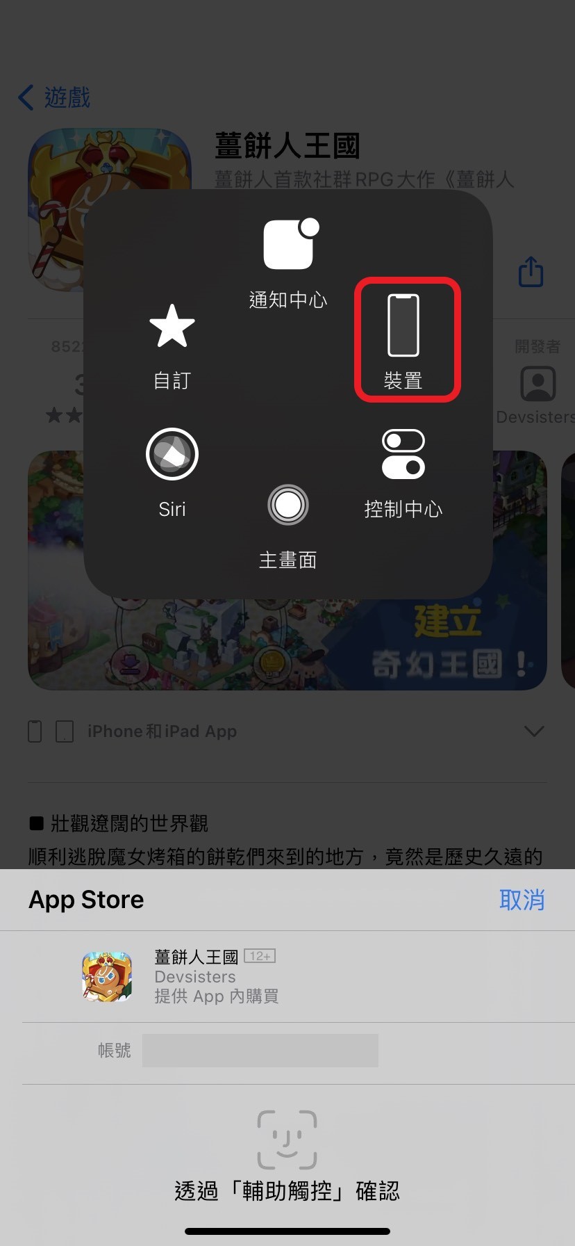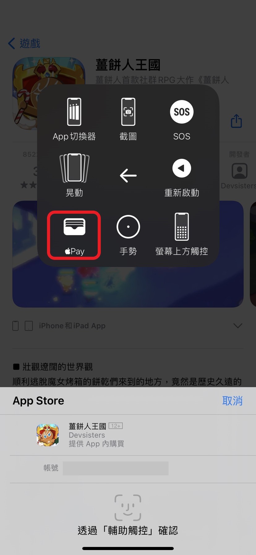 當你要下載APP或是使用Apple pay時,就可以利用小白點執行動作