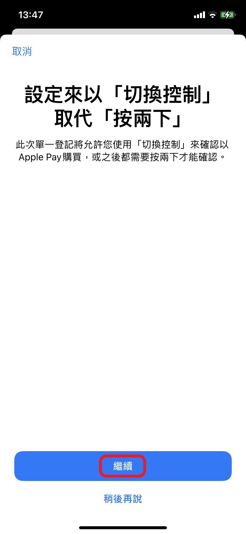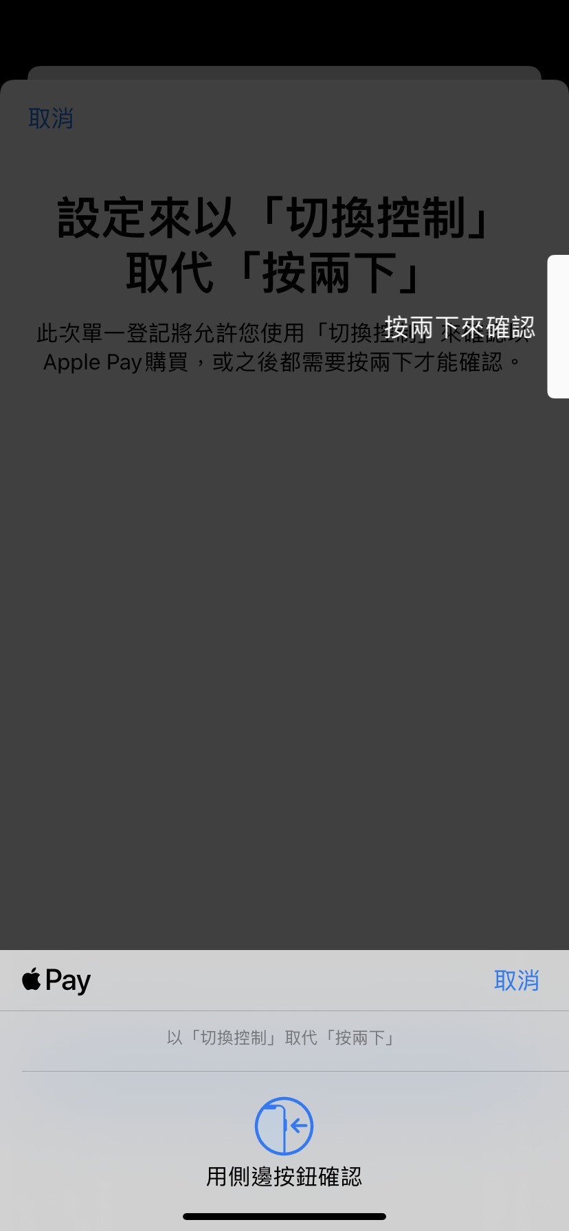 點選「Apple Pay」-> 確認「Apple pay」,就可以進行FACE ID了