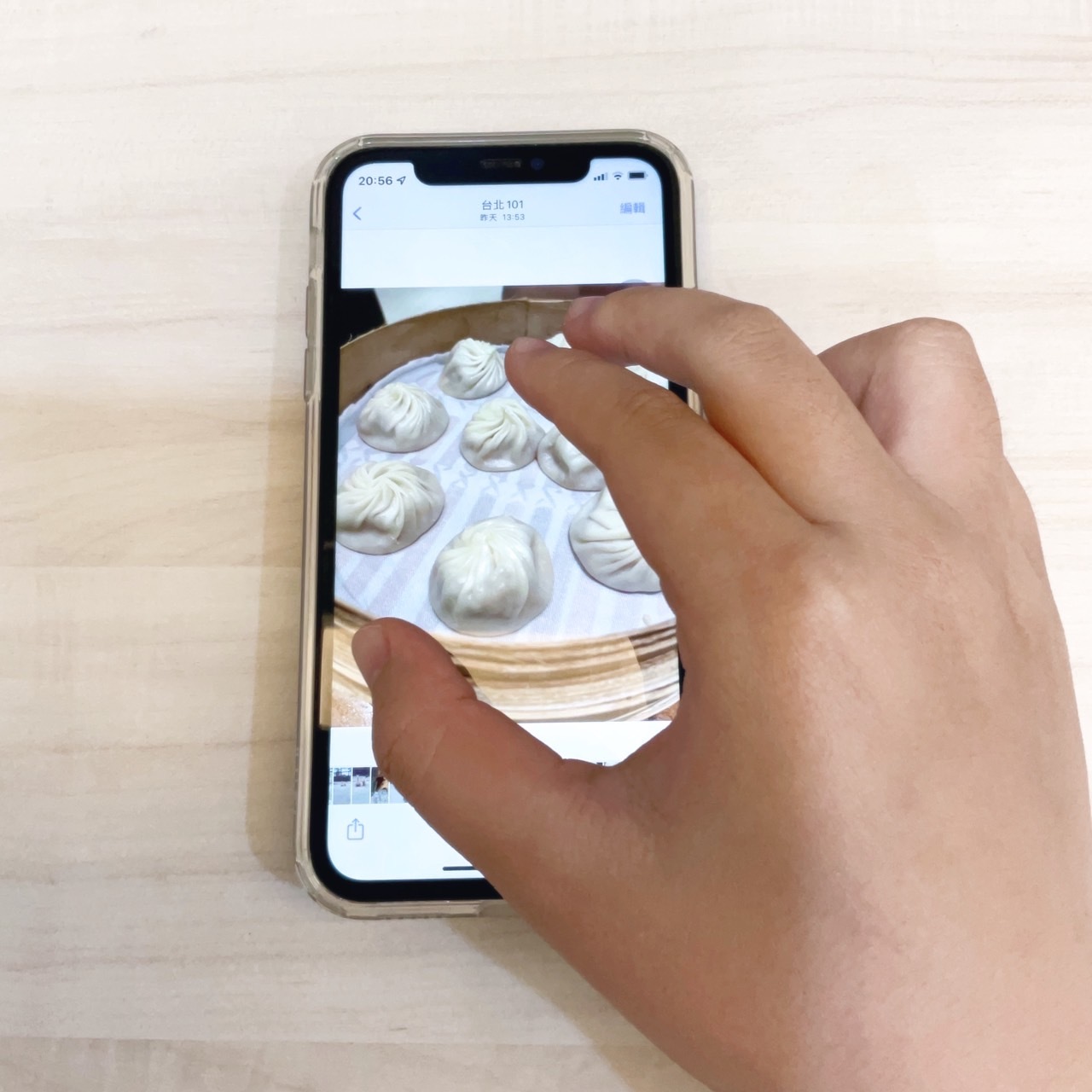 第一步:將要分享的圖片開啟,並且用三隻手指頭快速捏合照片,如果複製成功的話,上方會出現「拷貝」字樣。