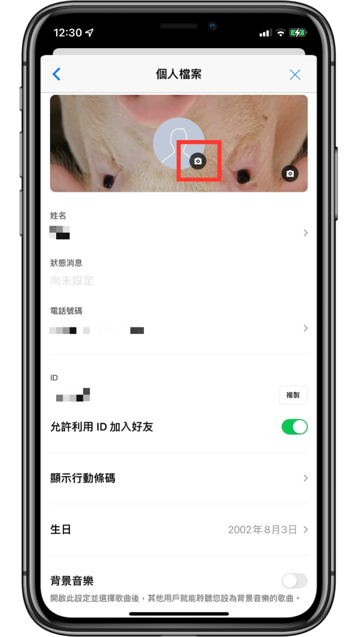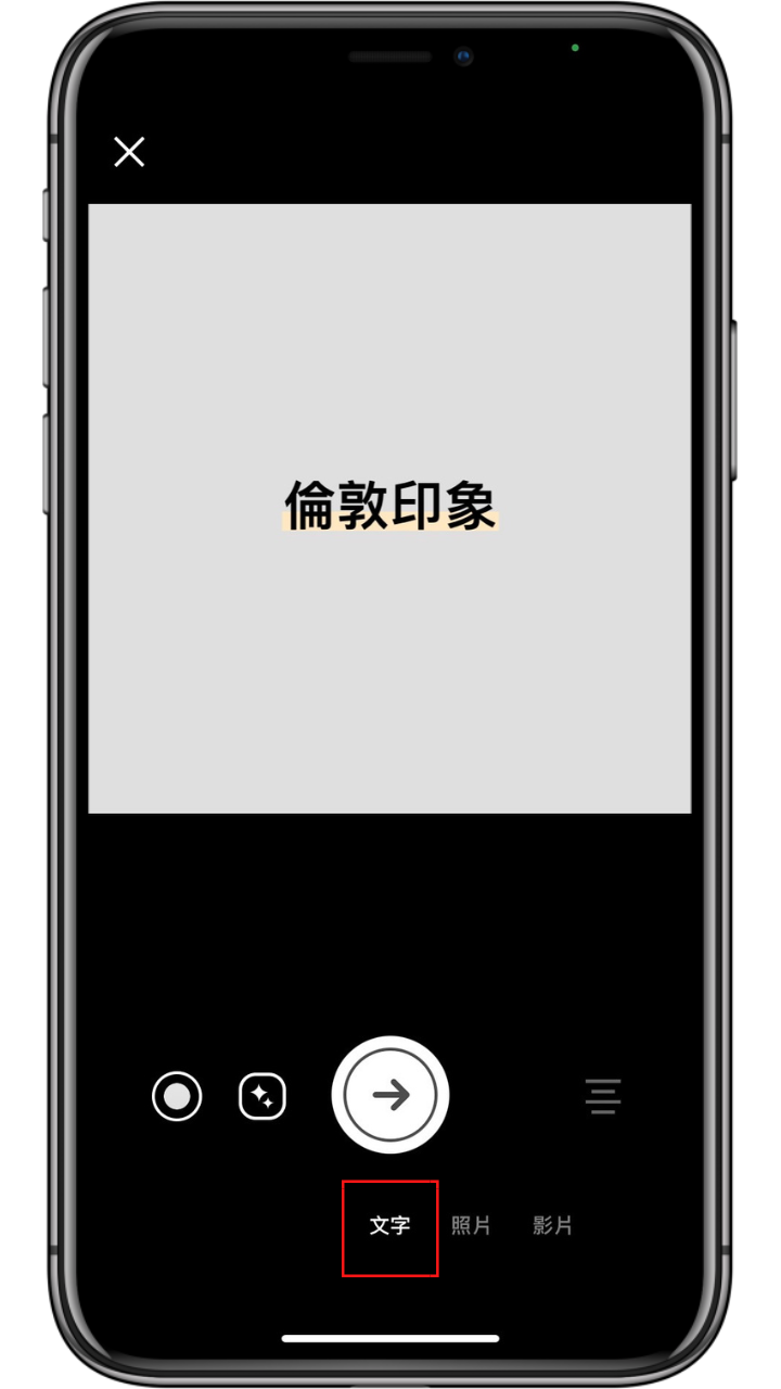 開啟 LINE APP -> 到主頁分頁點選右上角「設定」-> 點擊「個人檔案」-> 點擊頭像右下角的「相機圖示」-> 選擇「開啟相機」-> 下方切換至「文字」模式,就可以輸入自己想輸入的文字,左下方兩個按鈕也可以更換背景顏色以及文字風格。