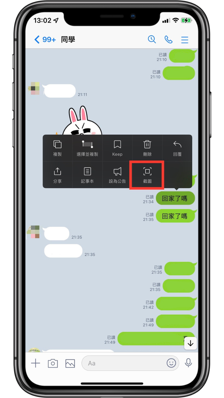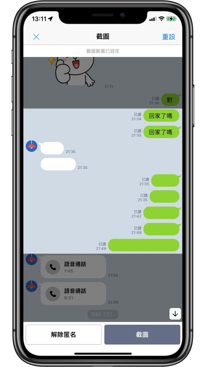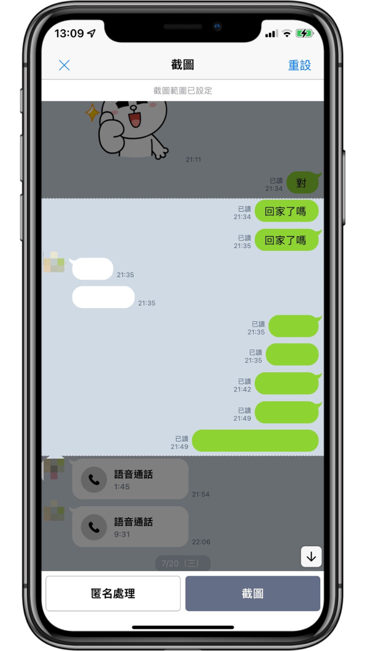 功能六:LINE 聊天對話長截圖與匿名截圖
