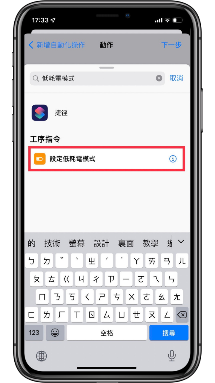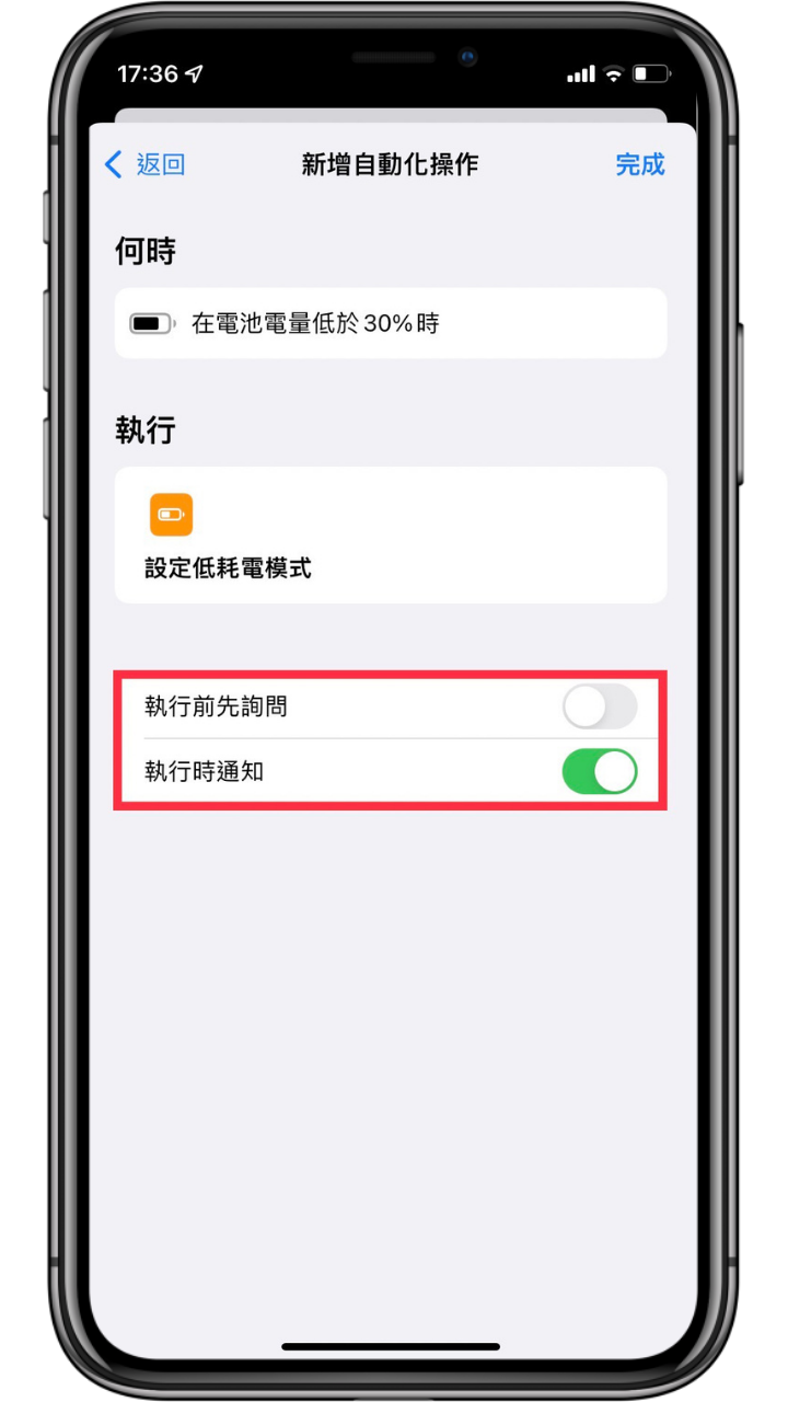 方法二:搭配捷徑自動化功能自動開啟「低耗電模式」