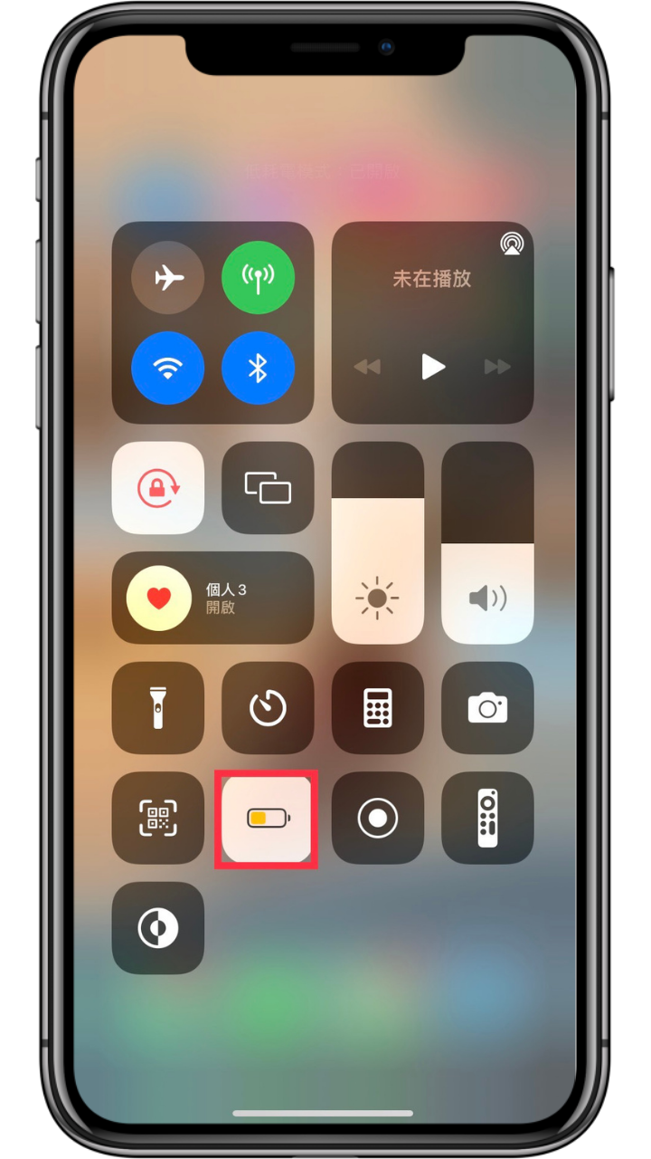 從iPhone右上角向下滑叫出「控制中心」-> 找到「電池符號」按鈕,點擊打開即可。
