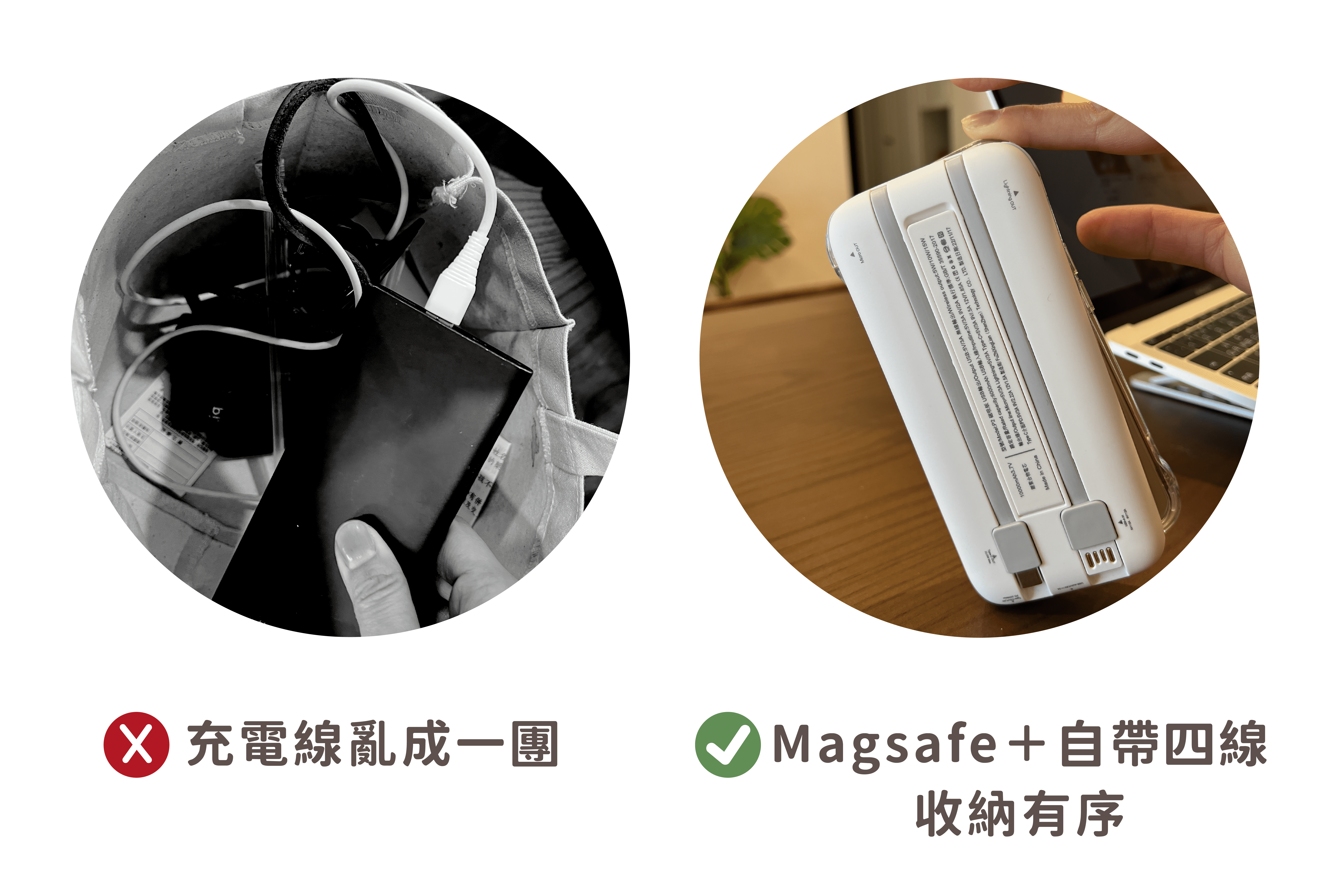 1. 自帶四條線充電線,不用擔心忘記帶線出門,讓你一台行動電源就能夠出門帶著走!