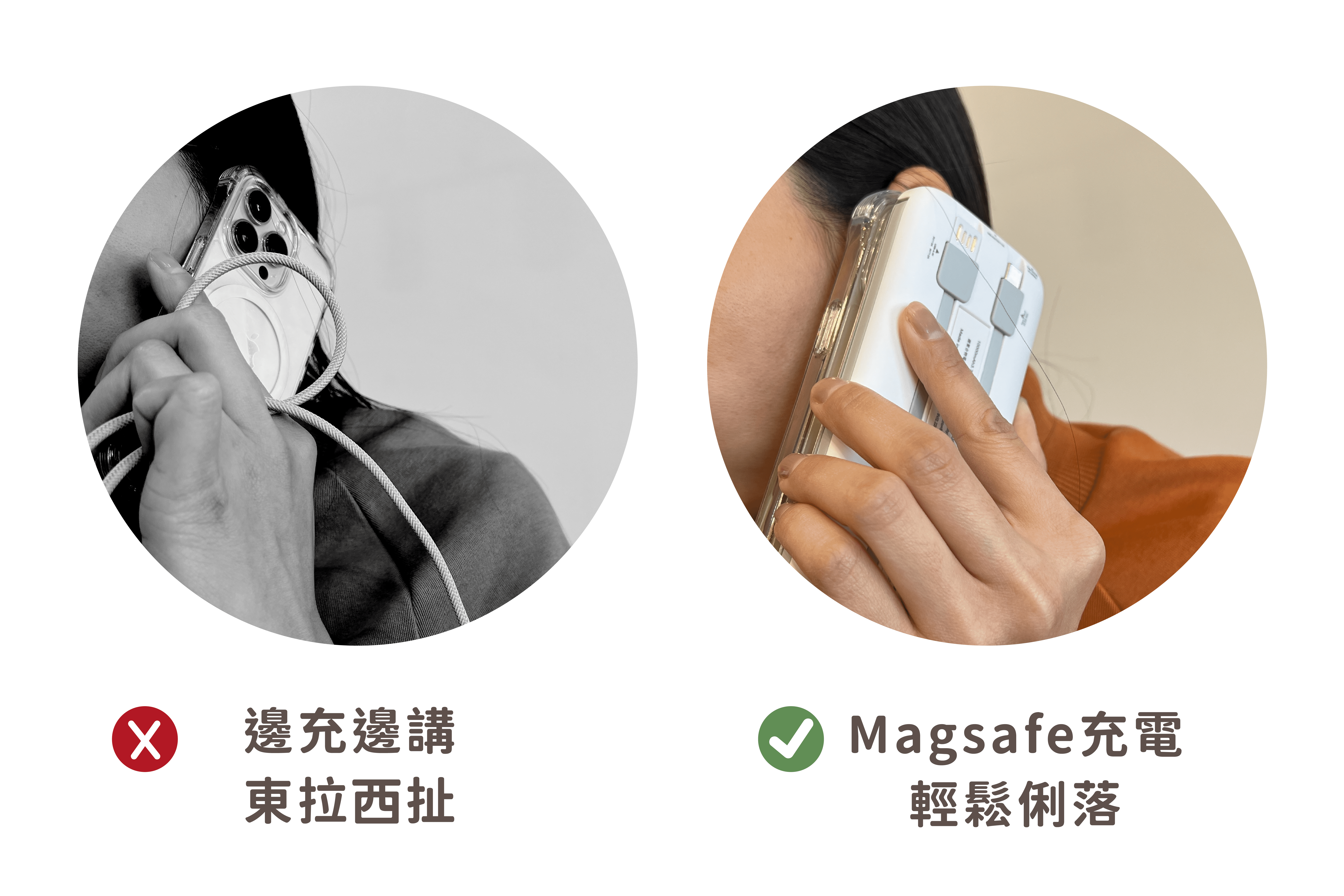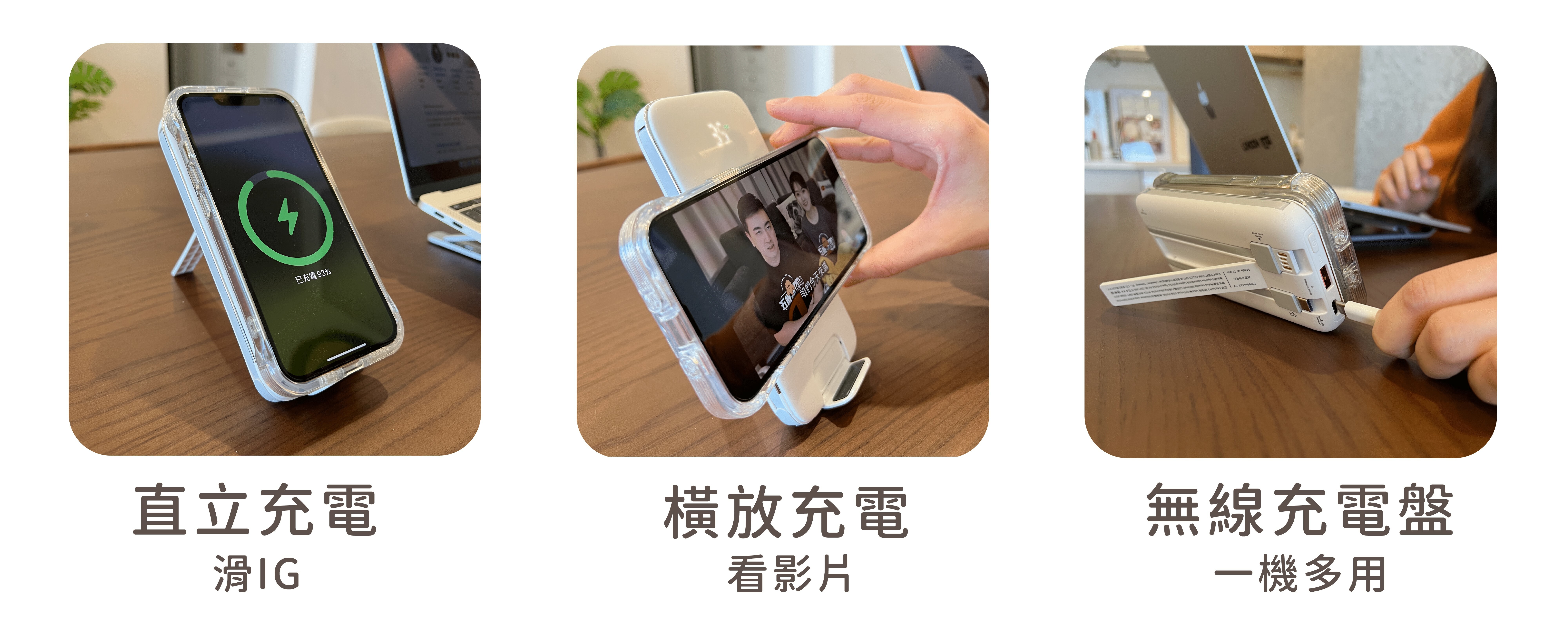 2. 支援 MagSafe 無線充電,搭配支架做使用,讓你外出邊充電、邊追劇,超方便!
