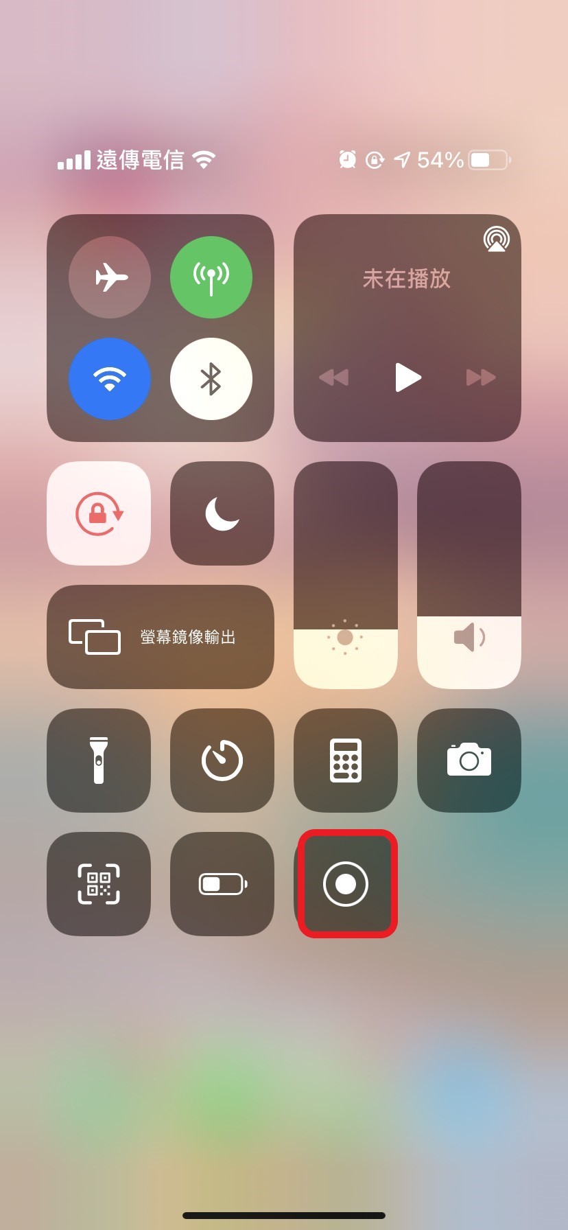 1. 滑出iPhone「控制中心」->點選「螢幕錄影」功能,左上方出現紅色提示代表正在錄影,錄完想要的畫面後,可再次滑出iPhone「控制中心」停止螢幕錄影。