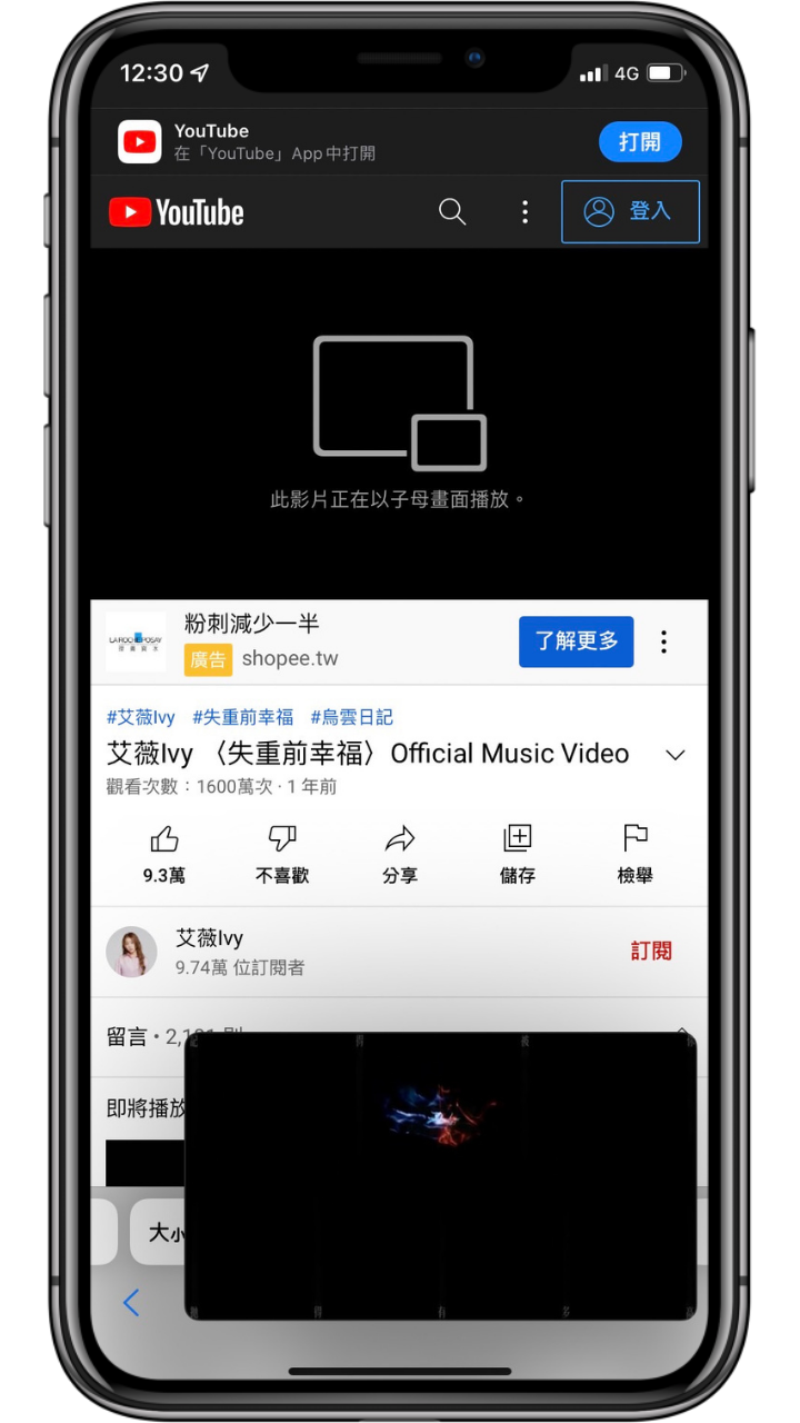 接下來 Youtube 影片就會以子母畫面播放,這樣就可以邊看影片邊做自己的事了!