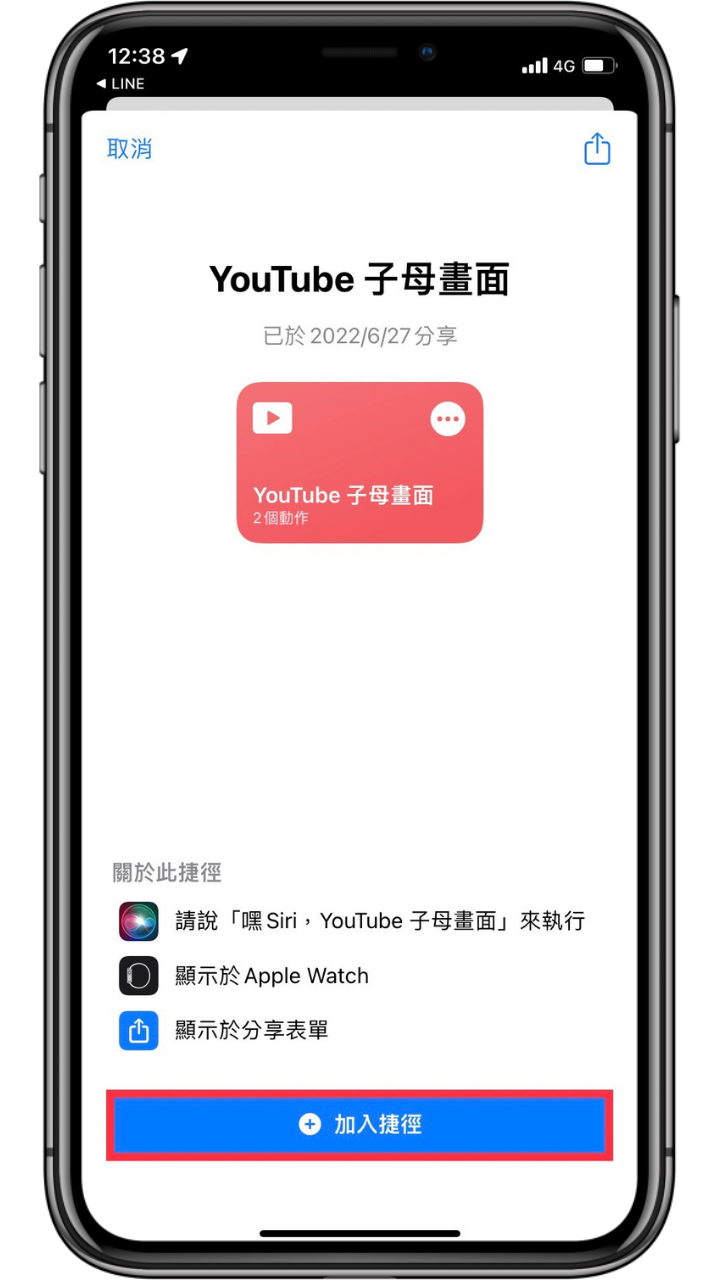 點選 「取得捷徑」-> 點擊「加入捷徑」即可。