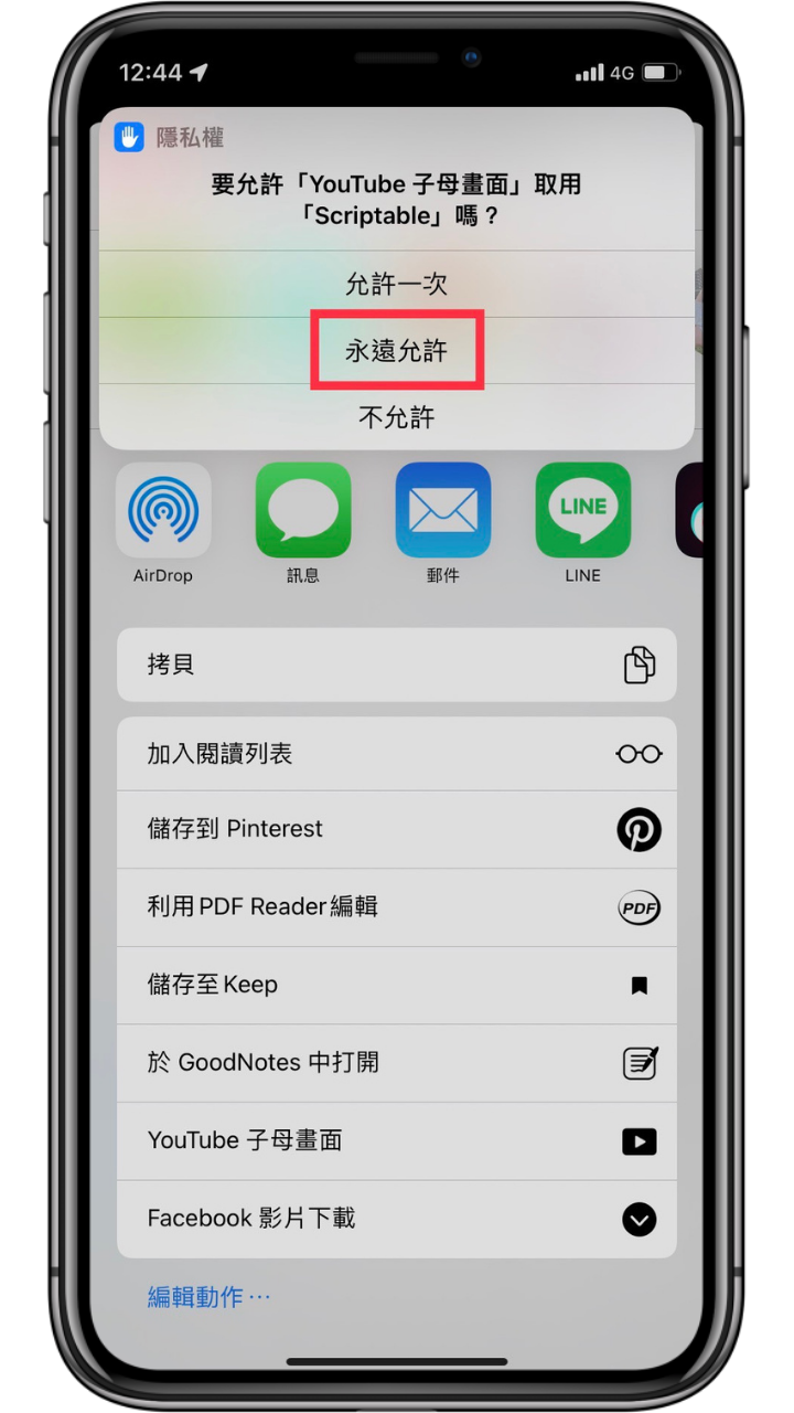 這個方法是利用 Youtube 子母畫面捷徑腳本實現子母畫面播放,但是必須要使用到 Scriptable 開發者工具才可使用。