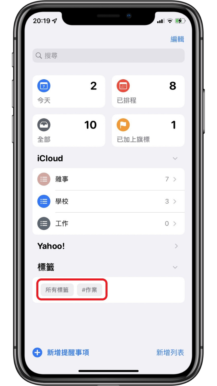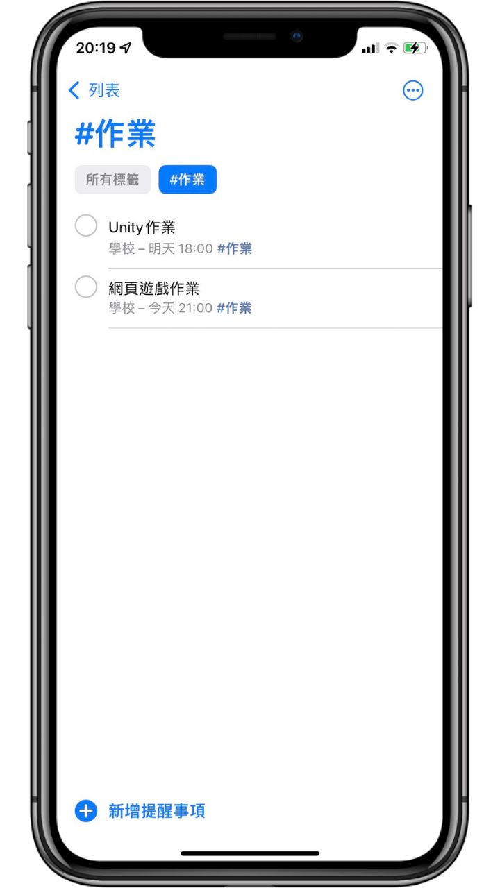 回到主頁面後可以看到下方「標籤」分類,點選進去後就會將有包含此標籤的提醒事項列出來。