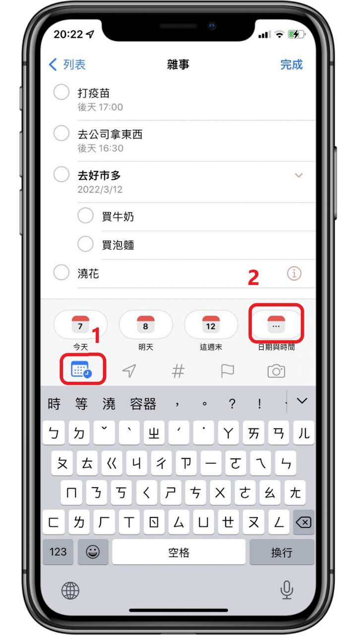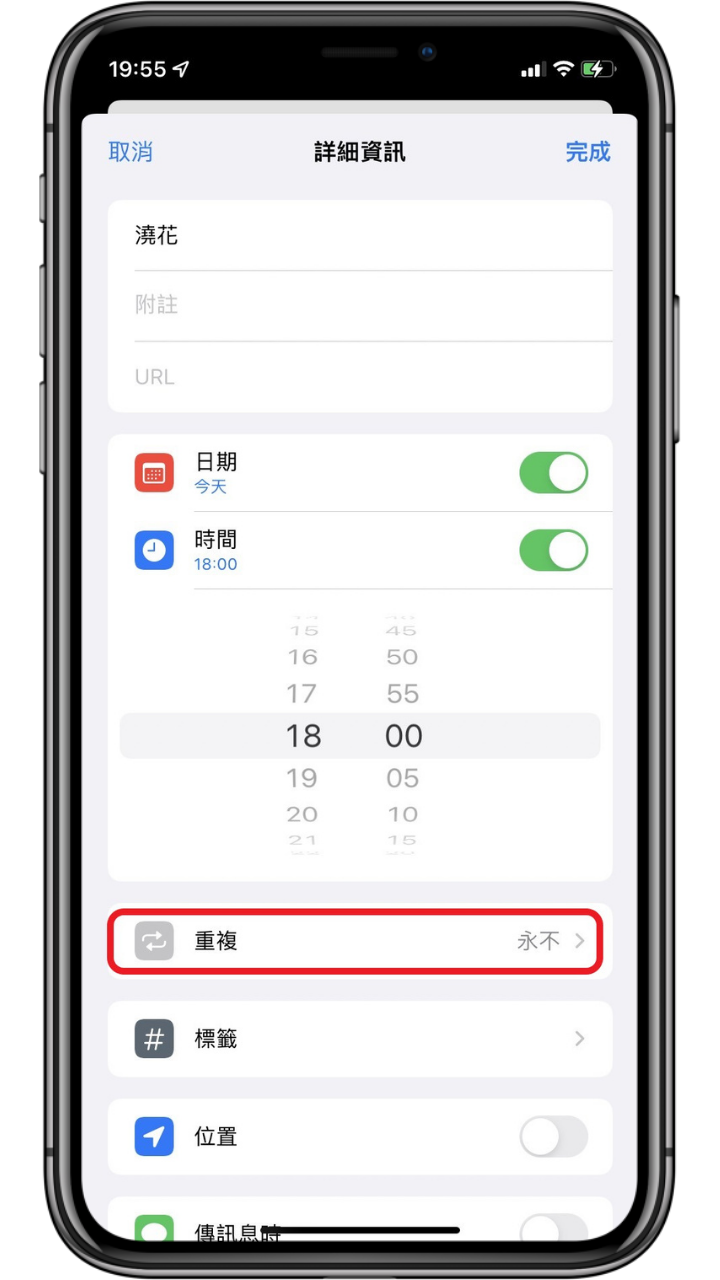 提醒事項除了可以選擇單一時間提醒之外,也可以自訂時間重複提醒,例如:澆花或吃藥這類的提醒事項。