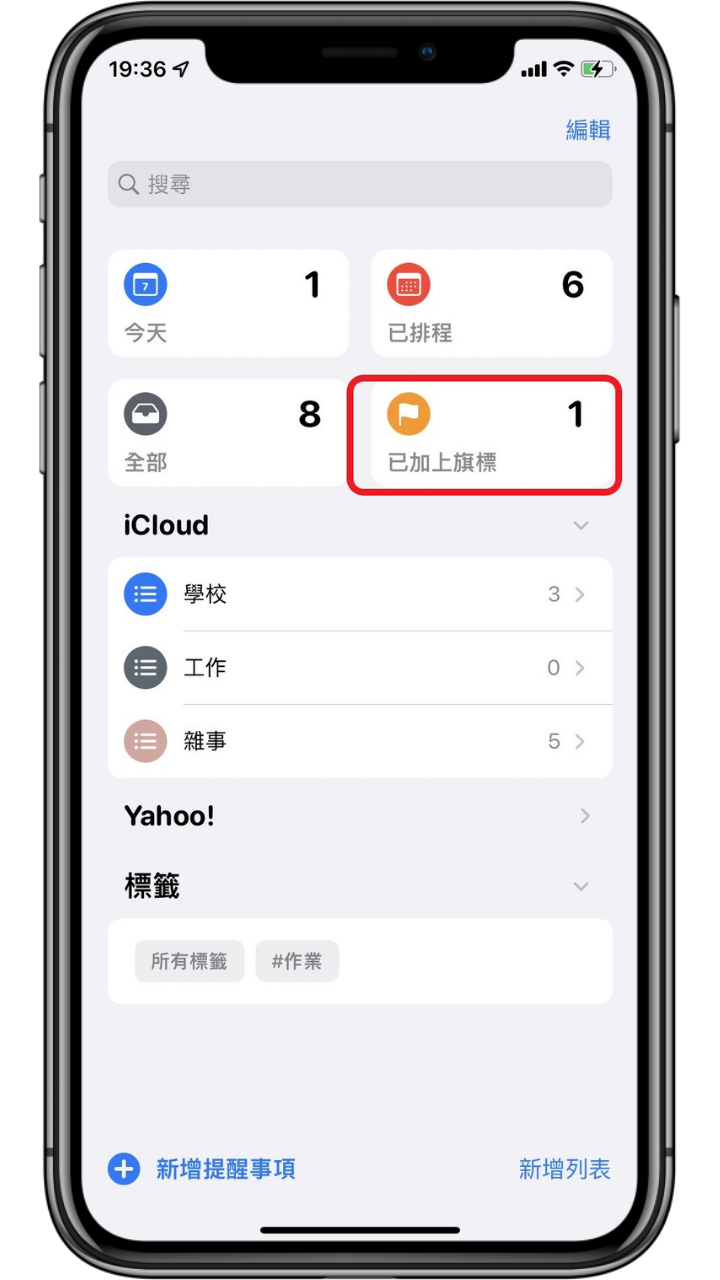 在「提醒事項」APP主頁面就可看到「已加上旗標」的分類,點選它就會列出重要的提醒事項。
