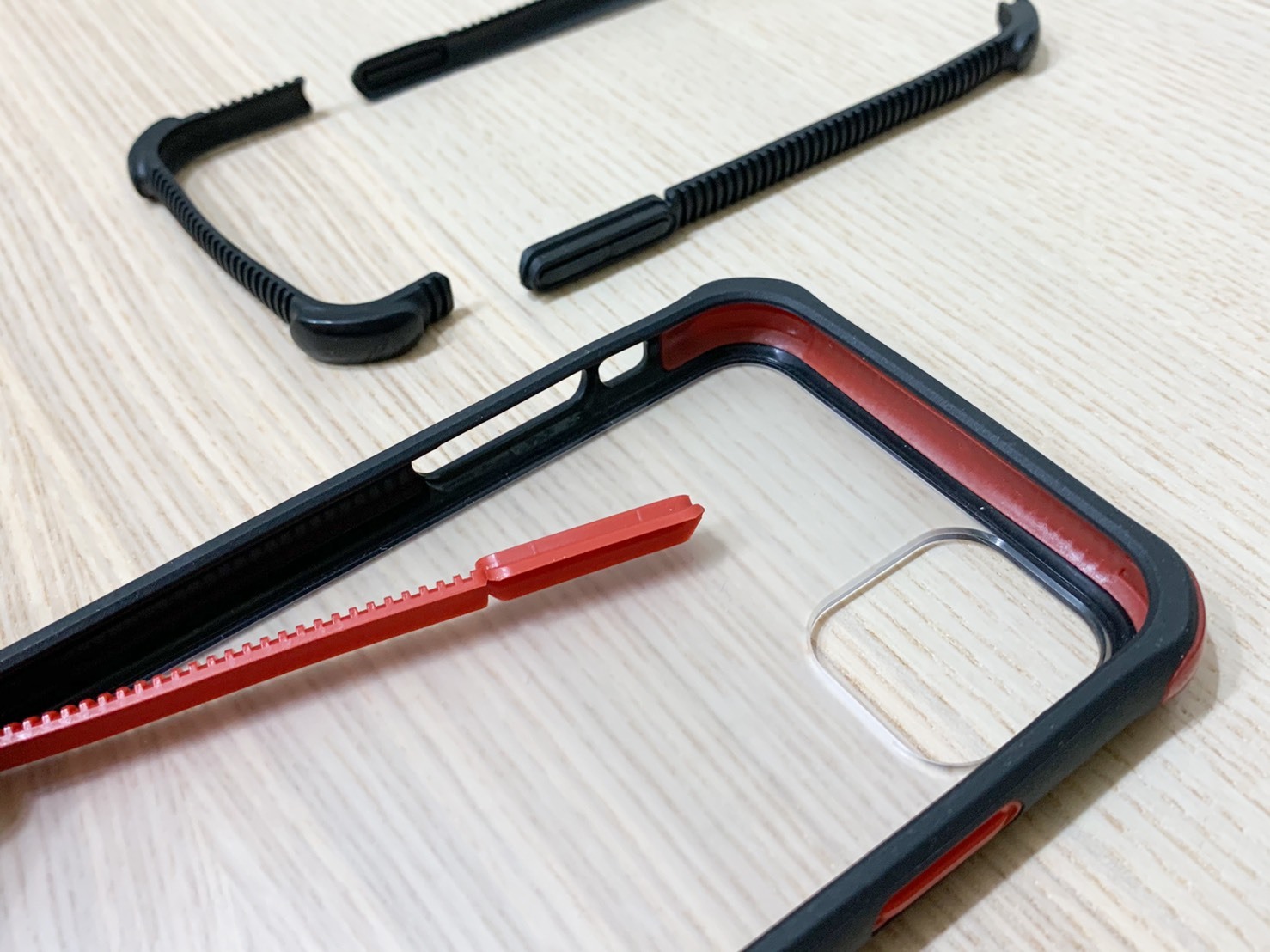 雙重堡壘抗摔吸震保護殼 - P04 具備流暢外型˙,擁有美國軍規耐衝擊認證可更軟式緊密邊條,獨家設計能自行更換配色邊條加入互動式操作,更能引起消費者興趣自行買來DIY看看。
