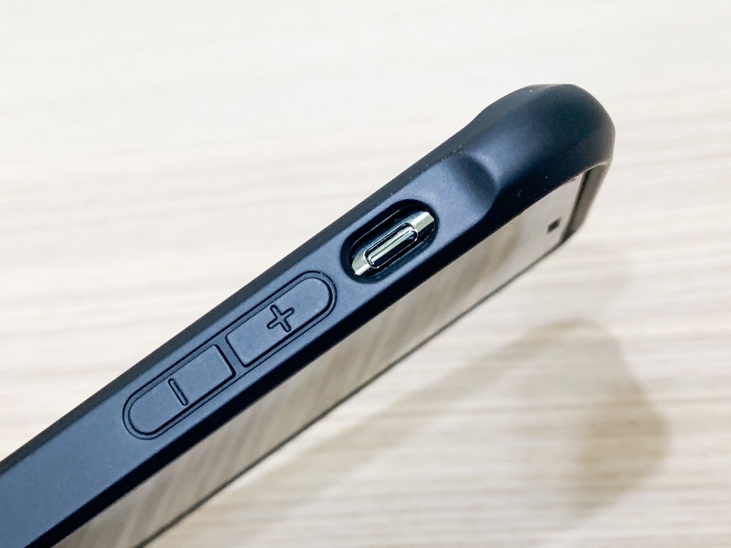 邊框的按鈕及充電孔設計,也都符合使用者需求,包含一體成形卻不影響使用時的回饋手感,充電孔也做加寬設計增添充電時的便捷性。