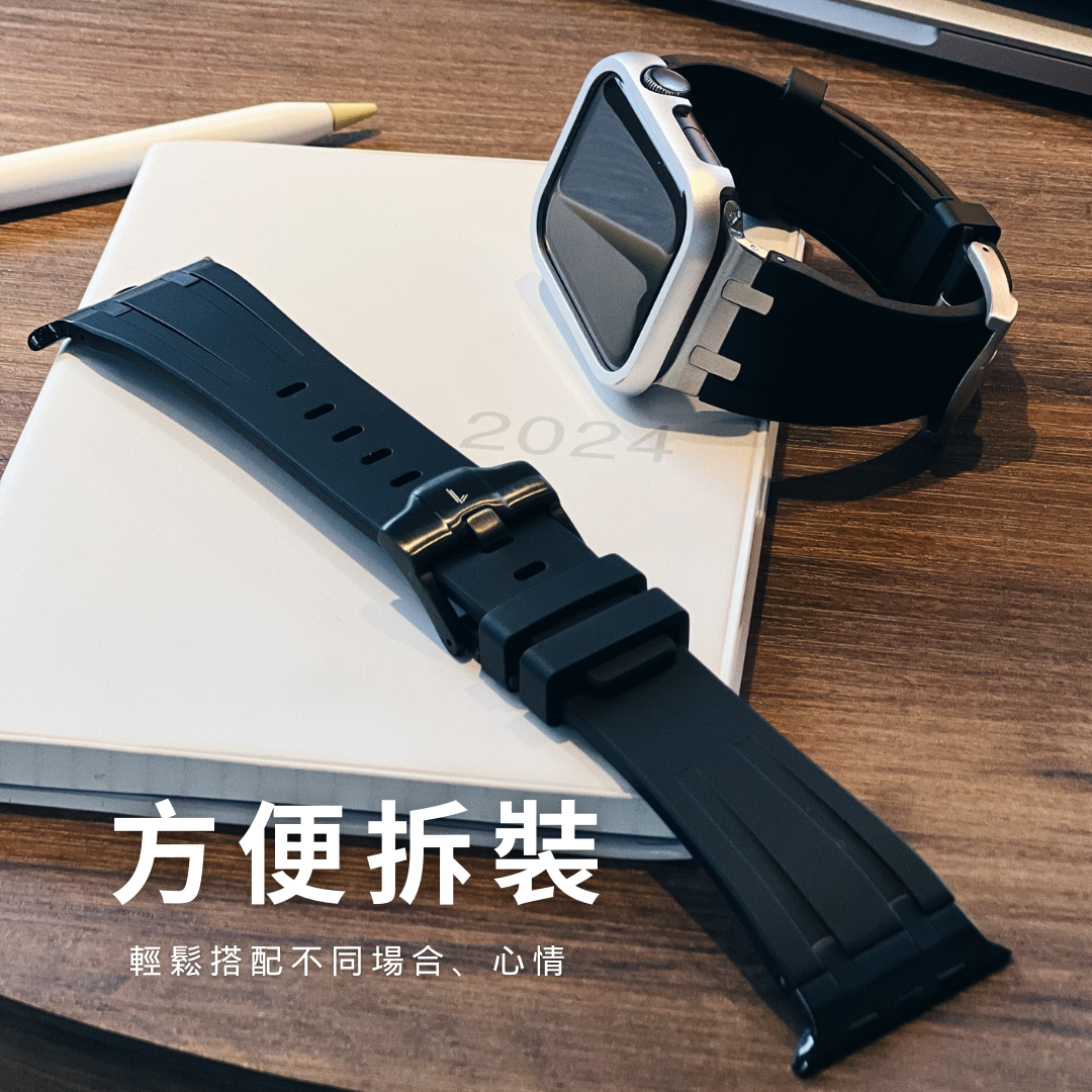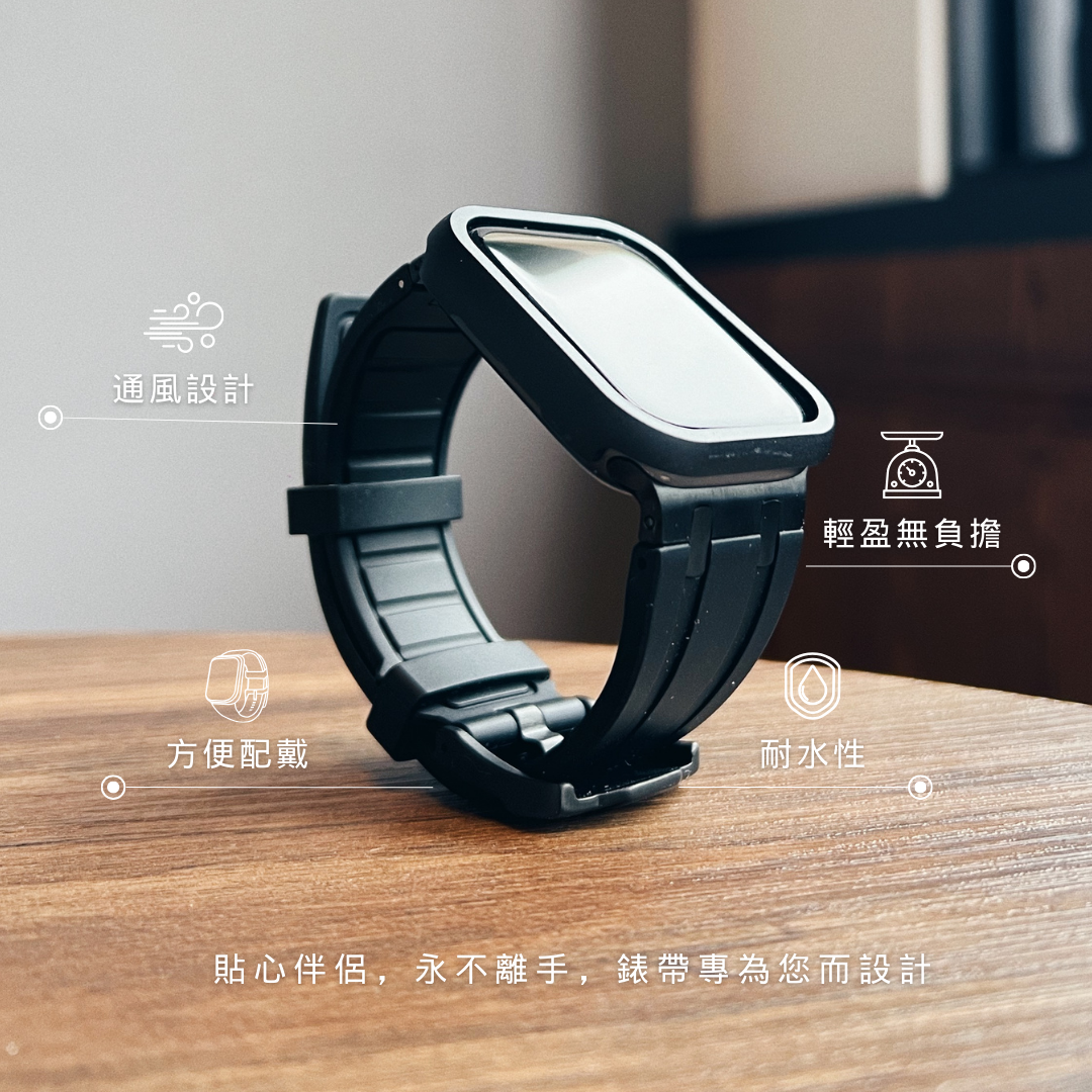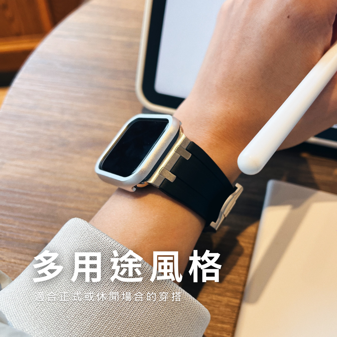 APPLE WATCH 透明保護殼 + LONDONIMG彈性矽膠錶帶【F83】