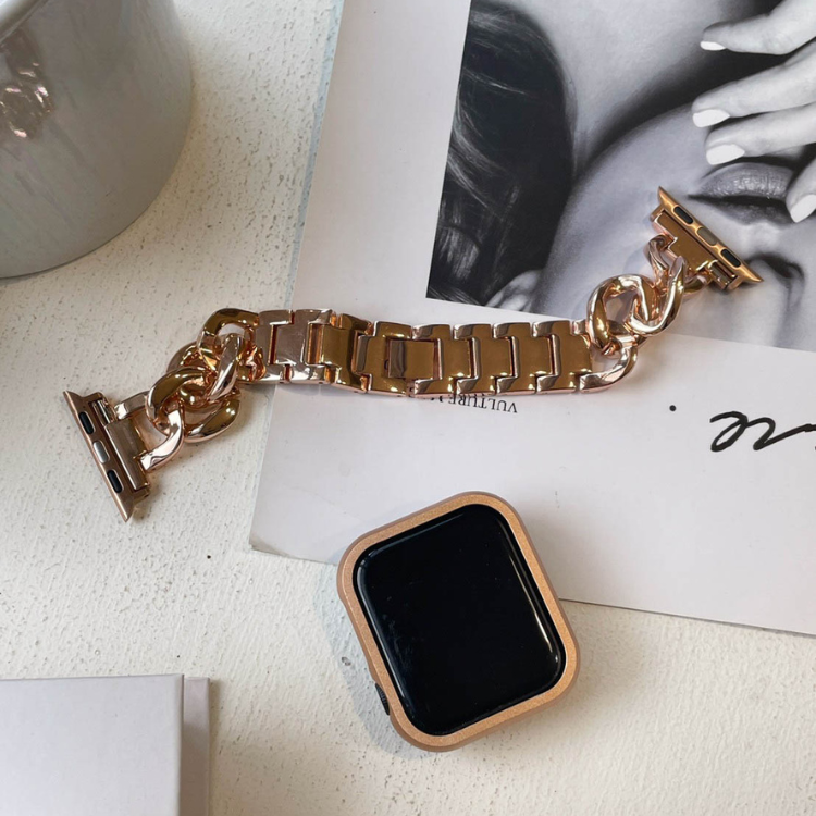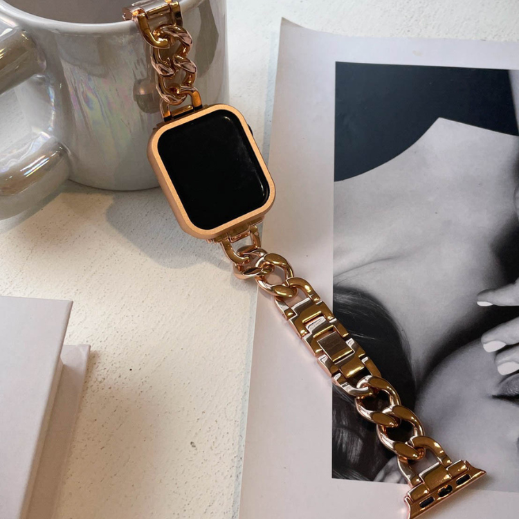 【錶帶+錶框】Apple Watch 不鏽鋼金屬扣鍊鎖鏈錶帶+錶框 組合【B48】