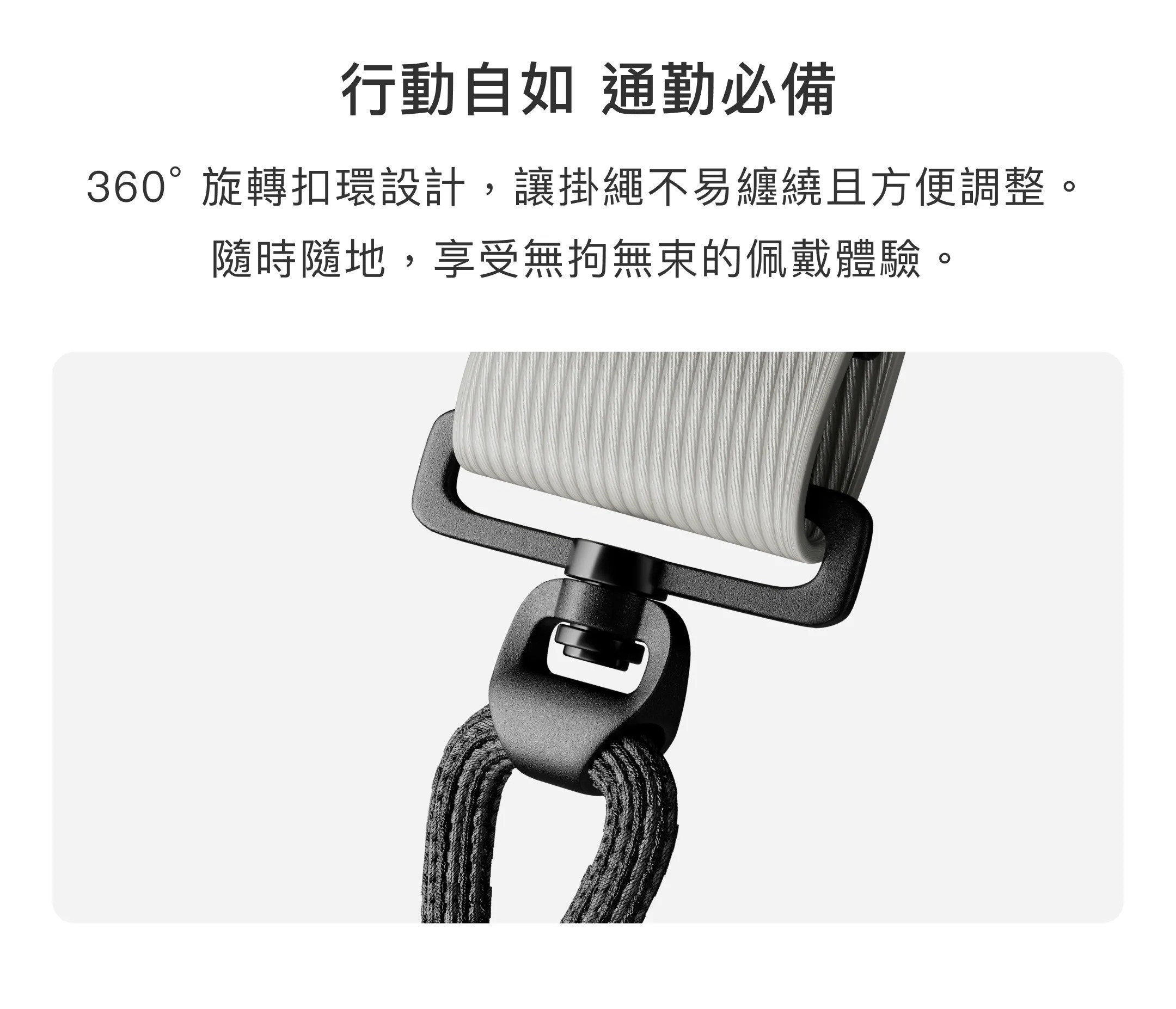 - 360° 旋轉扣環防止纏繞