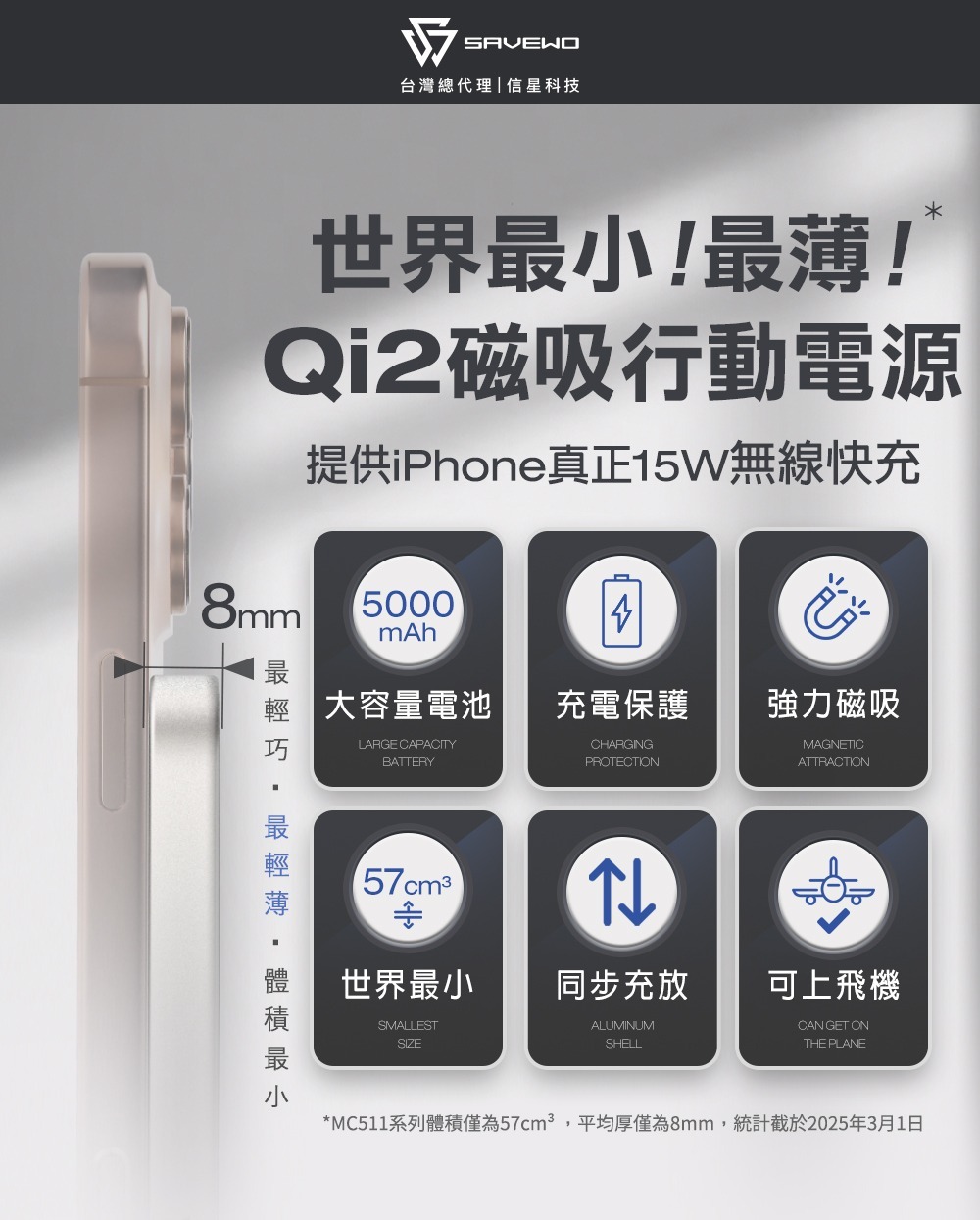纖薄極致:世界最小最薄的Qi2 15W高速無線充電技術,超薄8mm設計