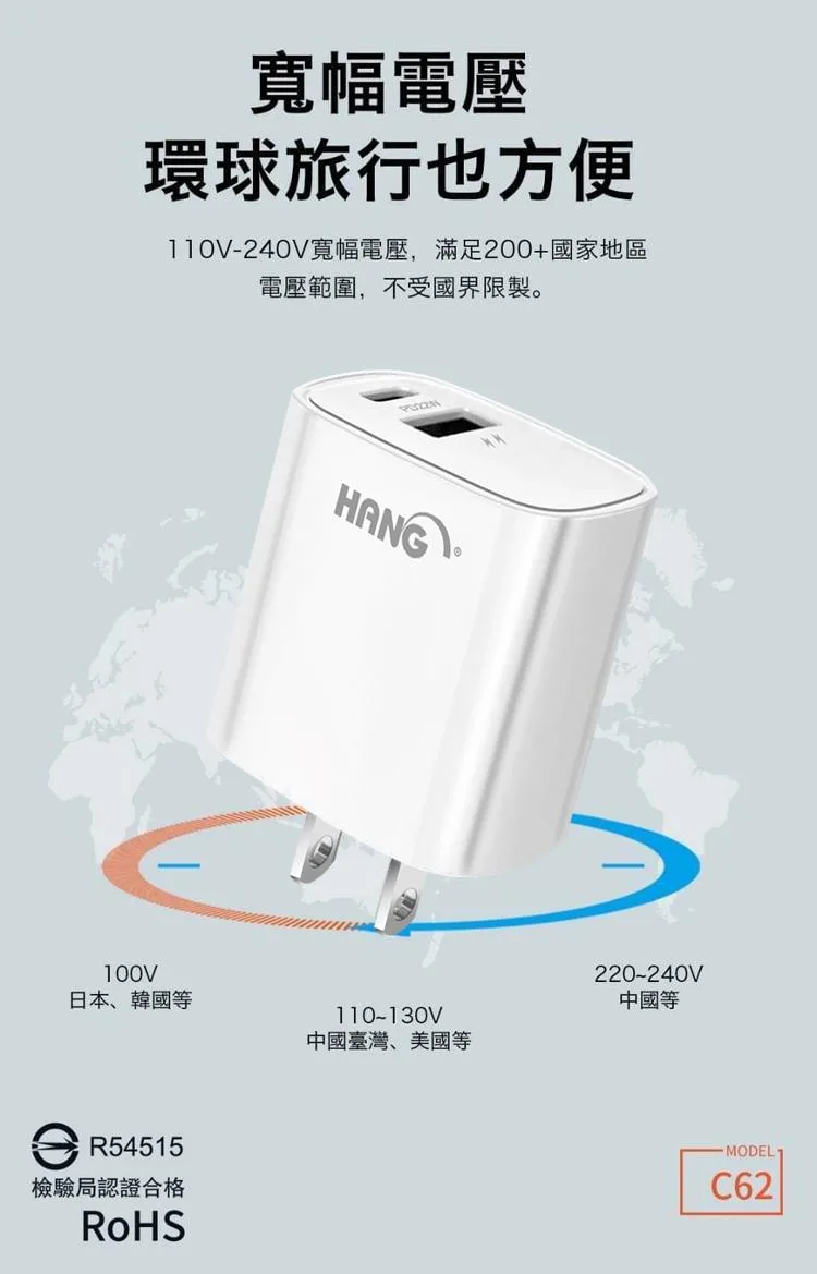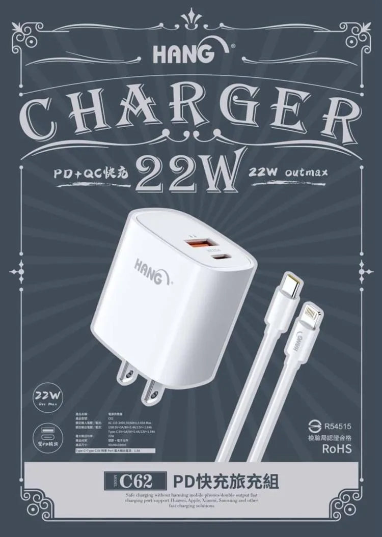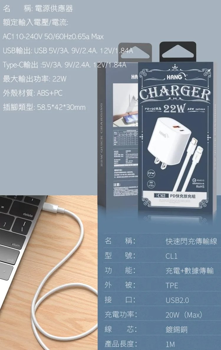 【加價購】iPhone 快充頭+快充線組合 HANG 22W雙孔快充頭+送PD快充傳輸線【B57】