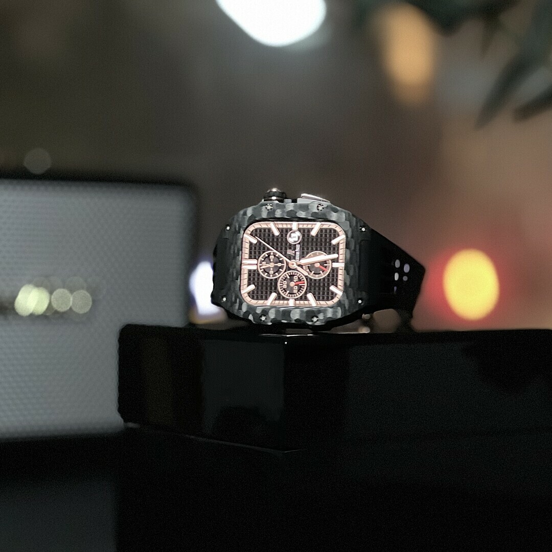 ●錶框採用碳纖維不鏽鋼材質加上邊框突出設計,有效保護錶面刮傷。