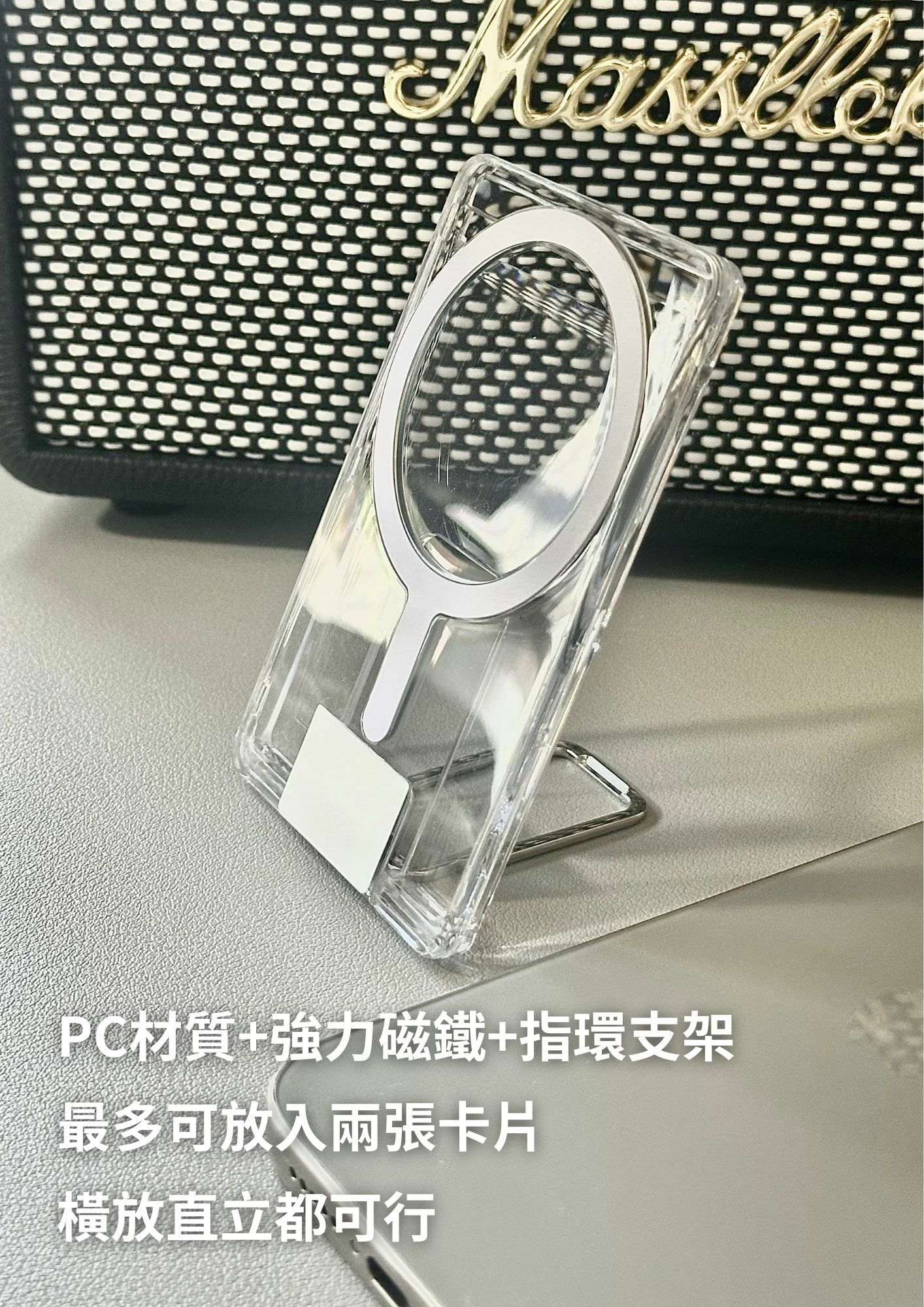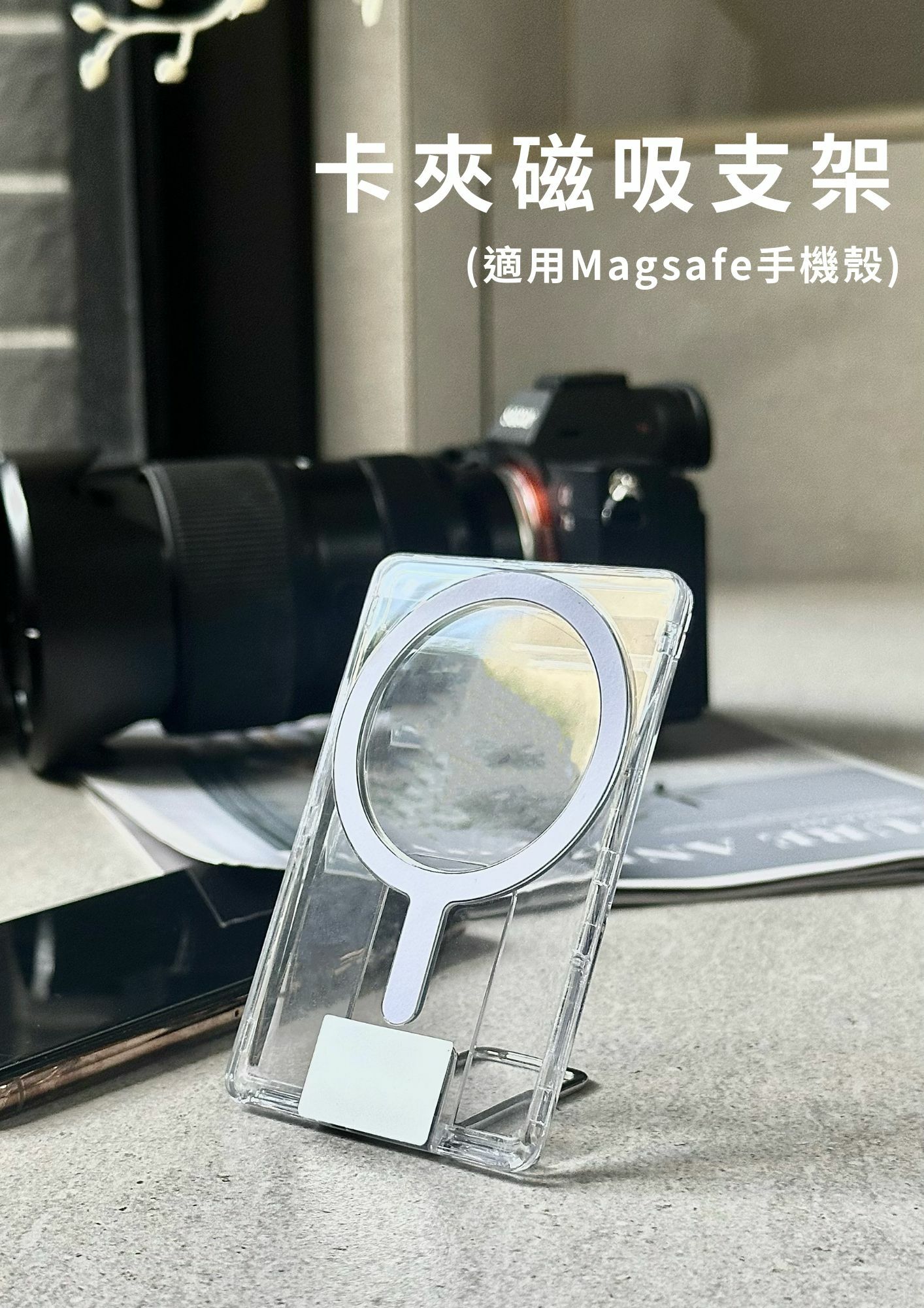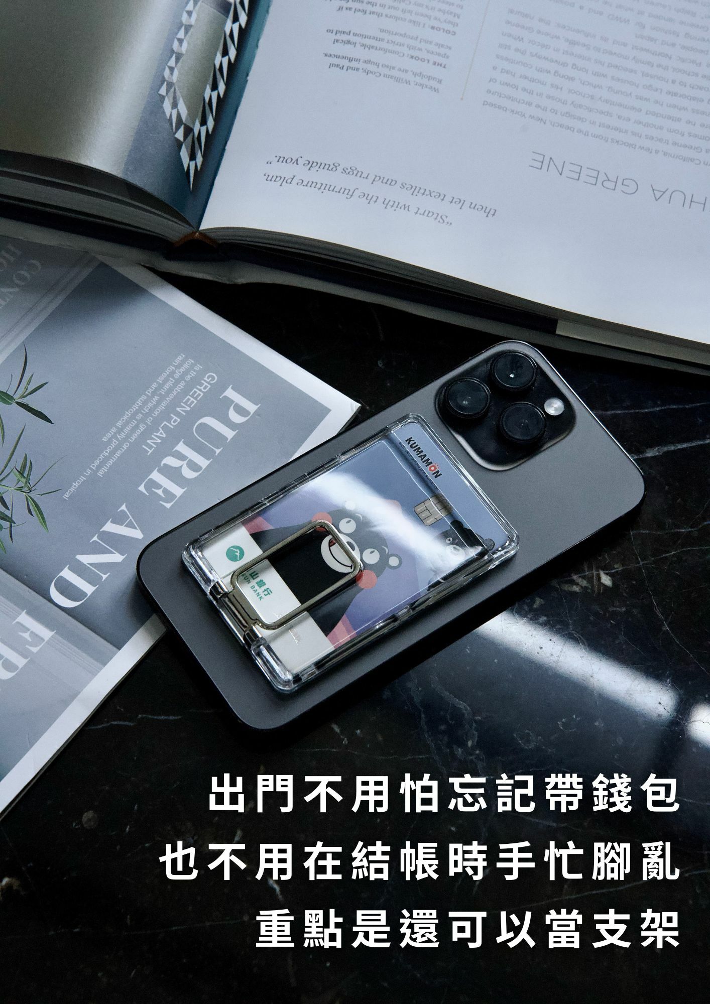 除了卡夾之外,還能用來當手機支架,橫放直立都可以。