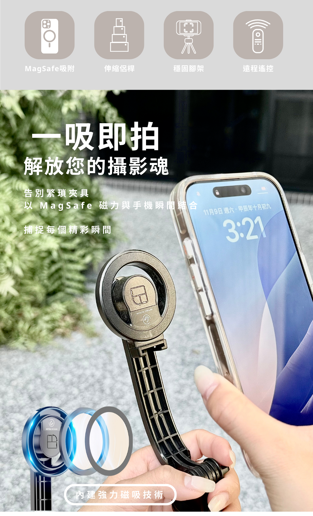 • 一吸即拍 解放您的攝影魂,捕捉每個精彩瞬間。