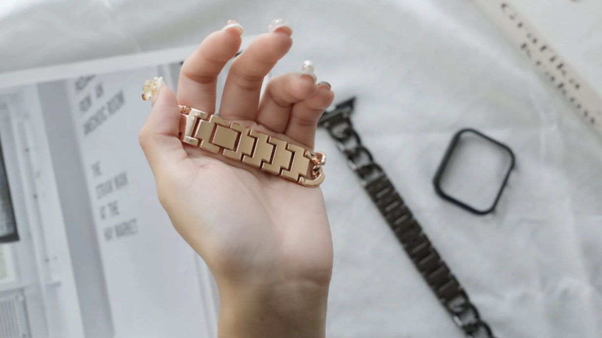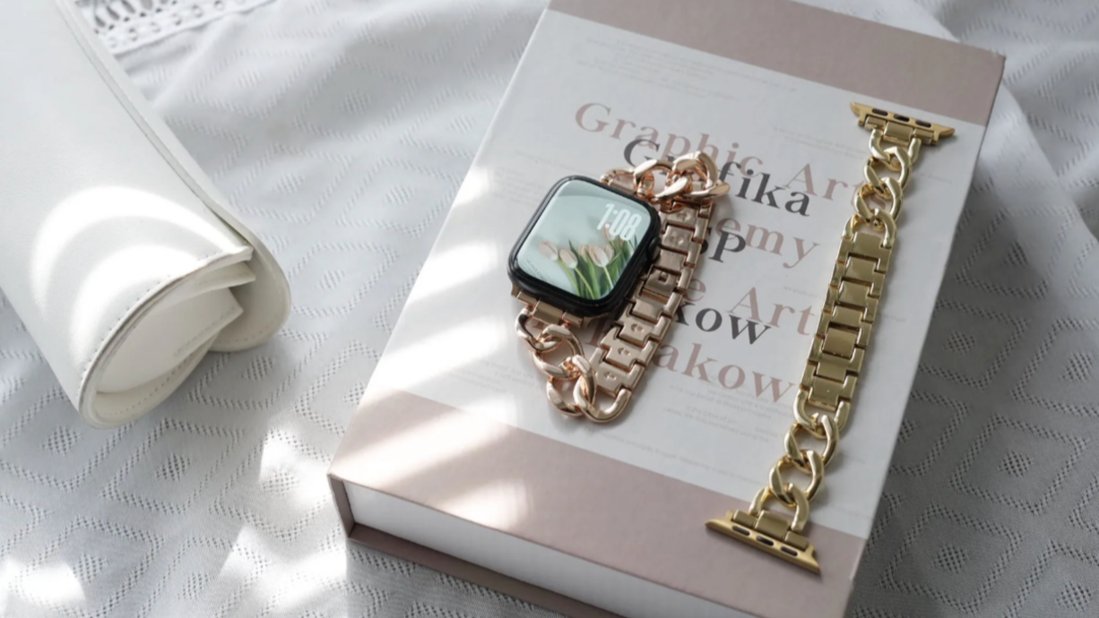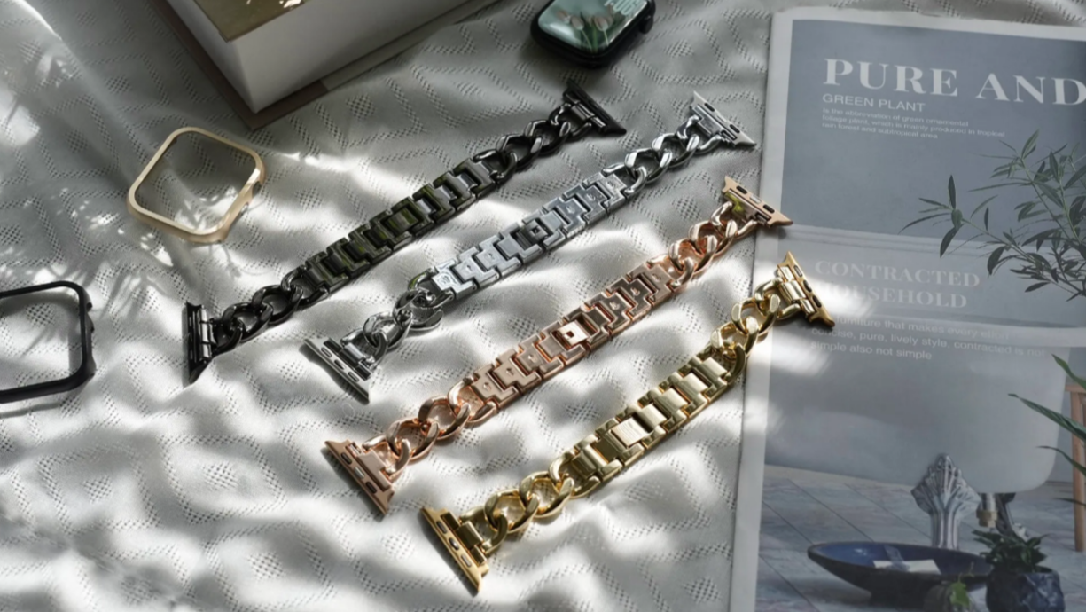 經典鎖鏈設計:優雅的長型鏈結造型,視覺上能有效修飾手腕線條。