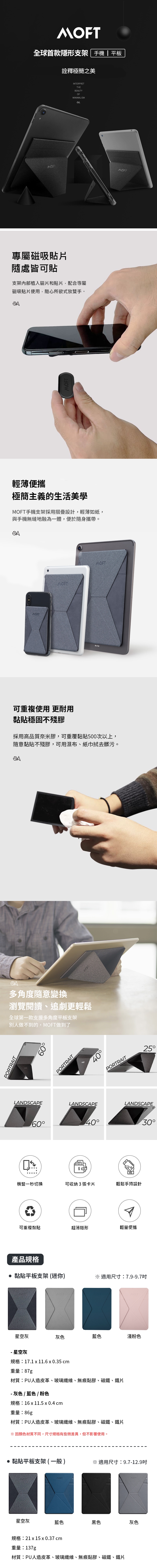"MOFT隱形平板支架,輕薄便攜,享受極簡的生活美學!採摺疊設計,輕薄如紙,與平板無縫地融為一體,更便於隨身攜帶。直立橫豎一秒切換,任何場景都好用!
