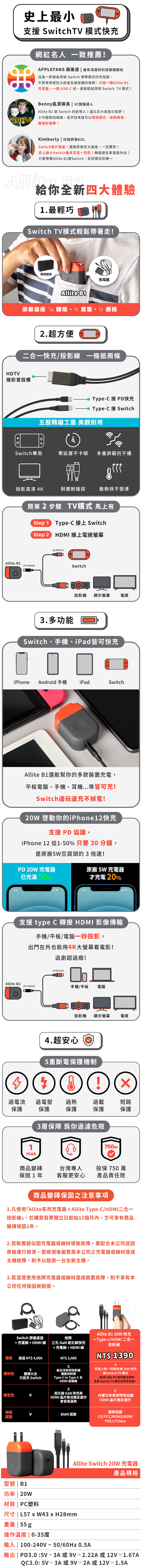 支援 Switch TV 模式 與 iPhone 15 投影,一顆 Allite B1 輕鬆完成投影與快充!