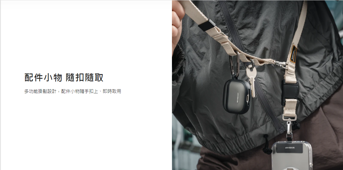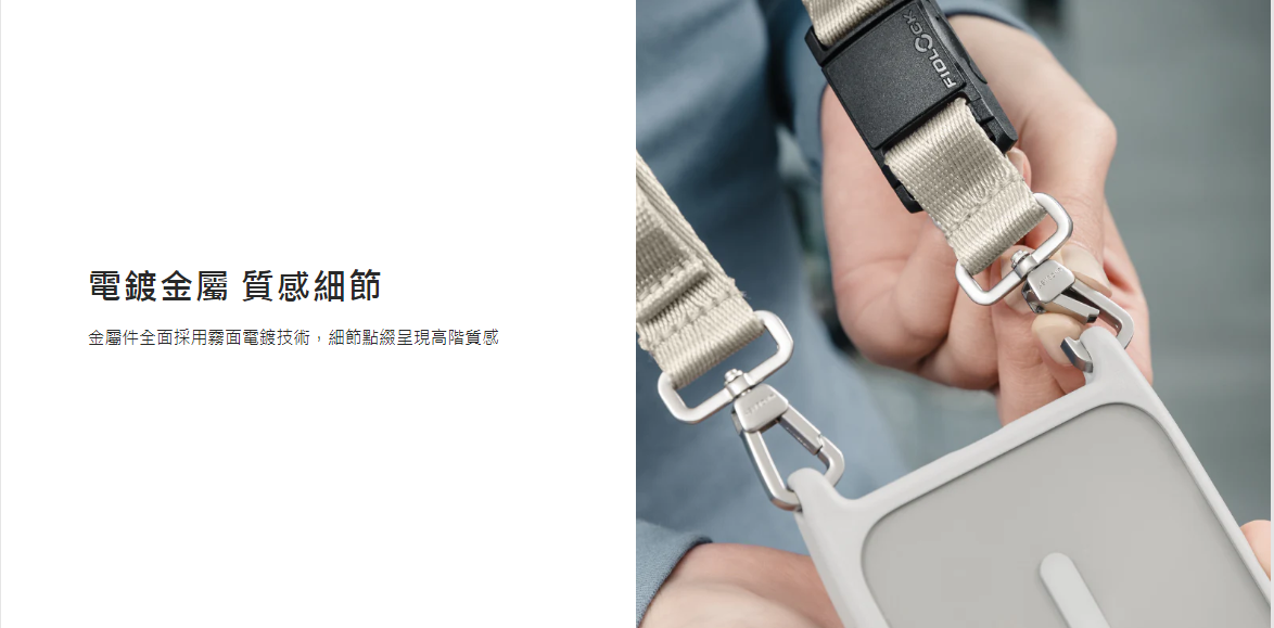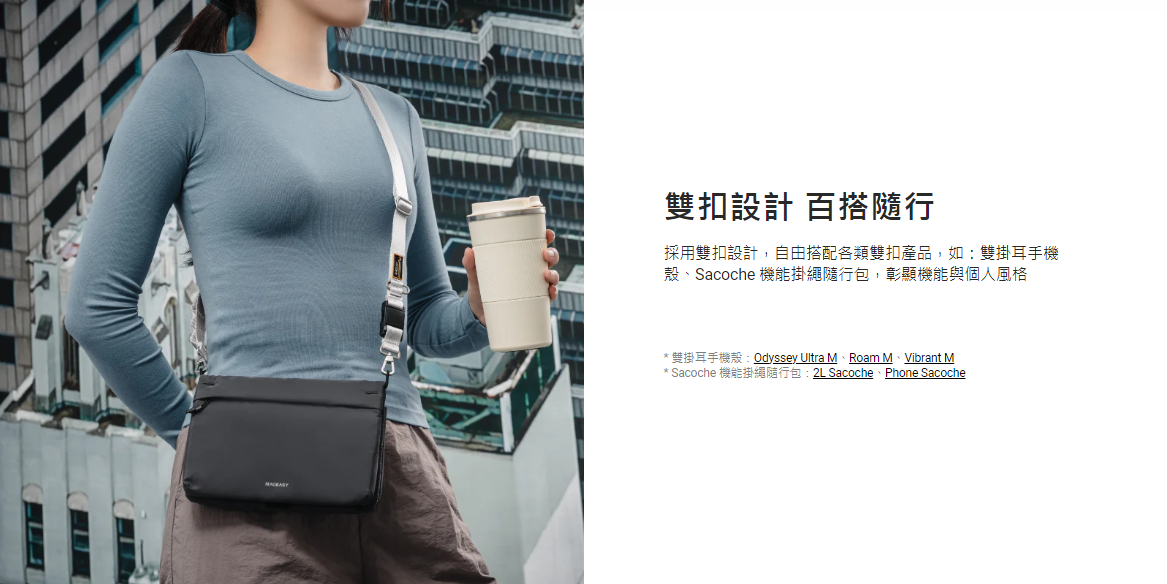 採用雙扣設計,自由搭配各類雙扣產品,如:雙掛耳手機殼、Sacoche 機能