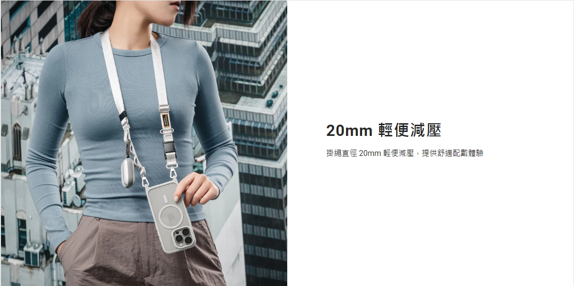 掛繩直徑 20mm 輕便減壓,提供舒適配戴體驗